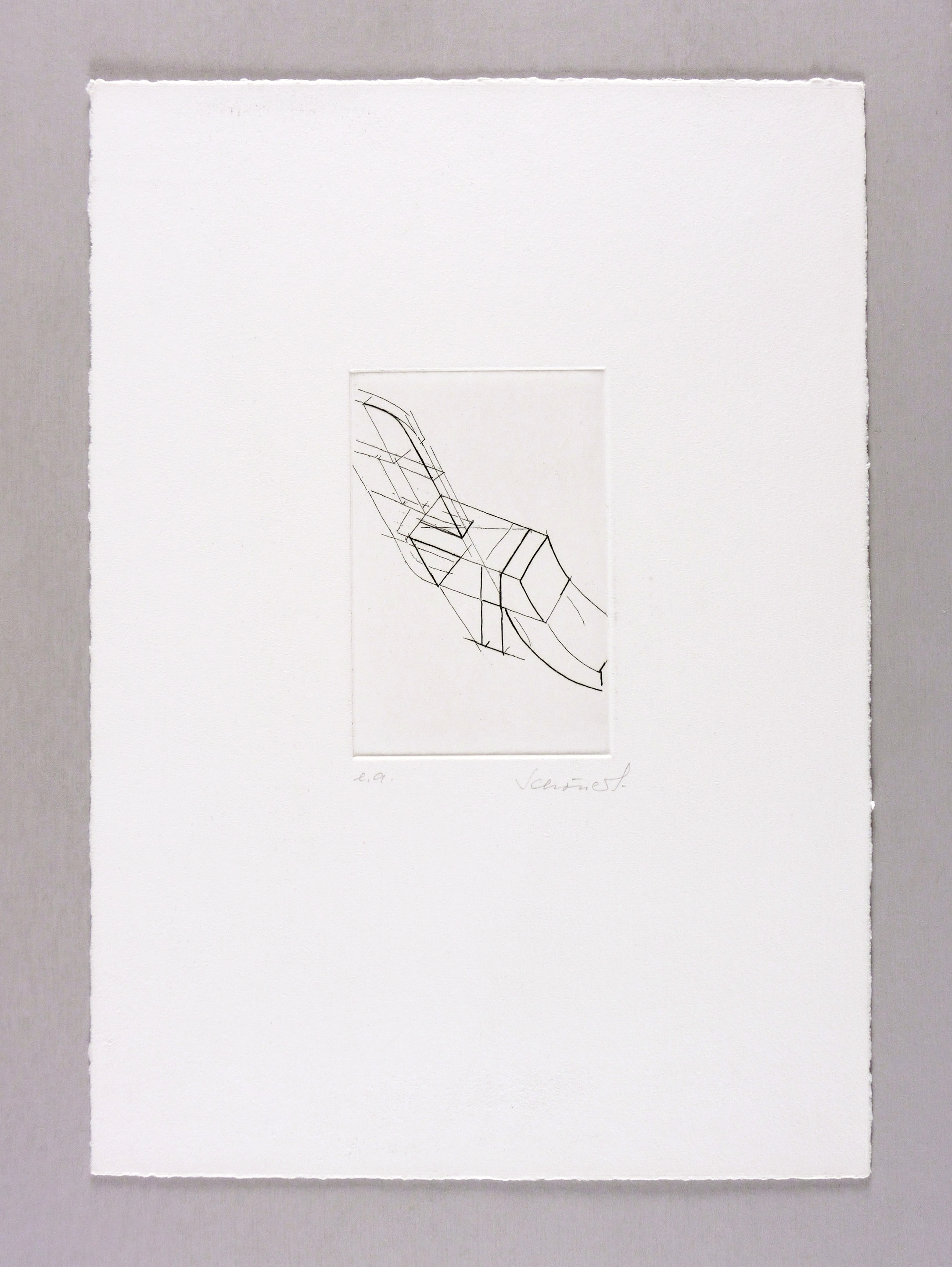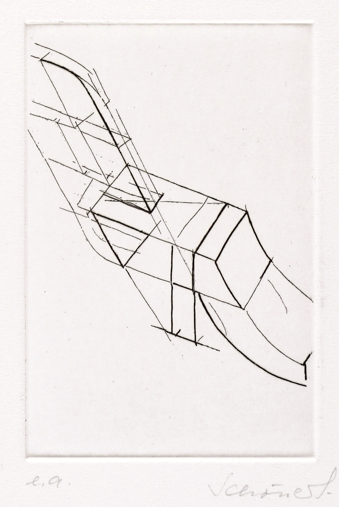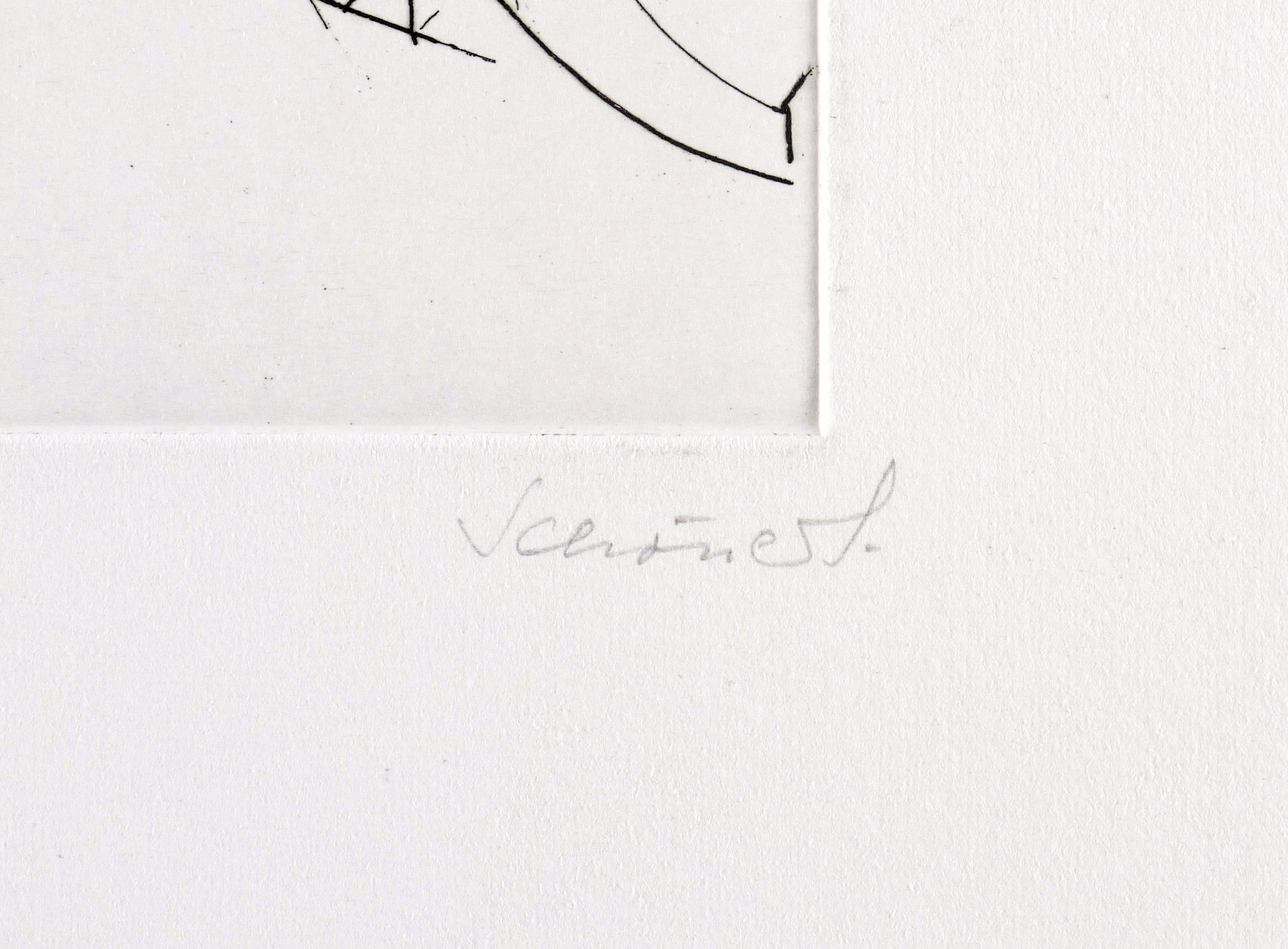 1980-1990. Radierung / Strichätzung, in Schwarz, auf kräftigem weißem Velinkarton. – Originale Künstlergrafik, von Johannes Schönert. – Künstlerexemplar (e.a.). – 14,8 x 9,9 cm (Darstellung / Platte), 42 x 30 cm (Blatt).
