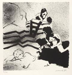 Hans Vent (1934 Weimar - 2018 Berlin). Deutscher Maler und Grafiker. 1948–51 Lehre als Baumaler. 1953 Tätigkeit als Restaurationsvolontär. 1953-59 Studium an der Hochschule für Bildende Künste Berlin. Seit 1958 freischaffend in Berlin und Mitglied im Verband Bildender Künstler Deutschlands. 1976-97 Lehrbeauftragter an der Hochschule für Bildende und Angewandte Kunst Berlin-Weißensee. Seit 1979 Honorardozent. 1982 Käthe-Kollwitz-Preis der Akademie der Künste der DDR.
