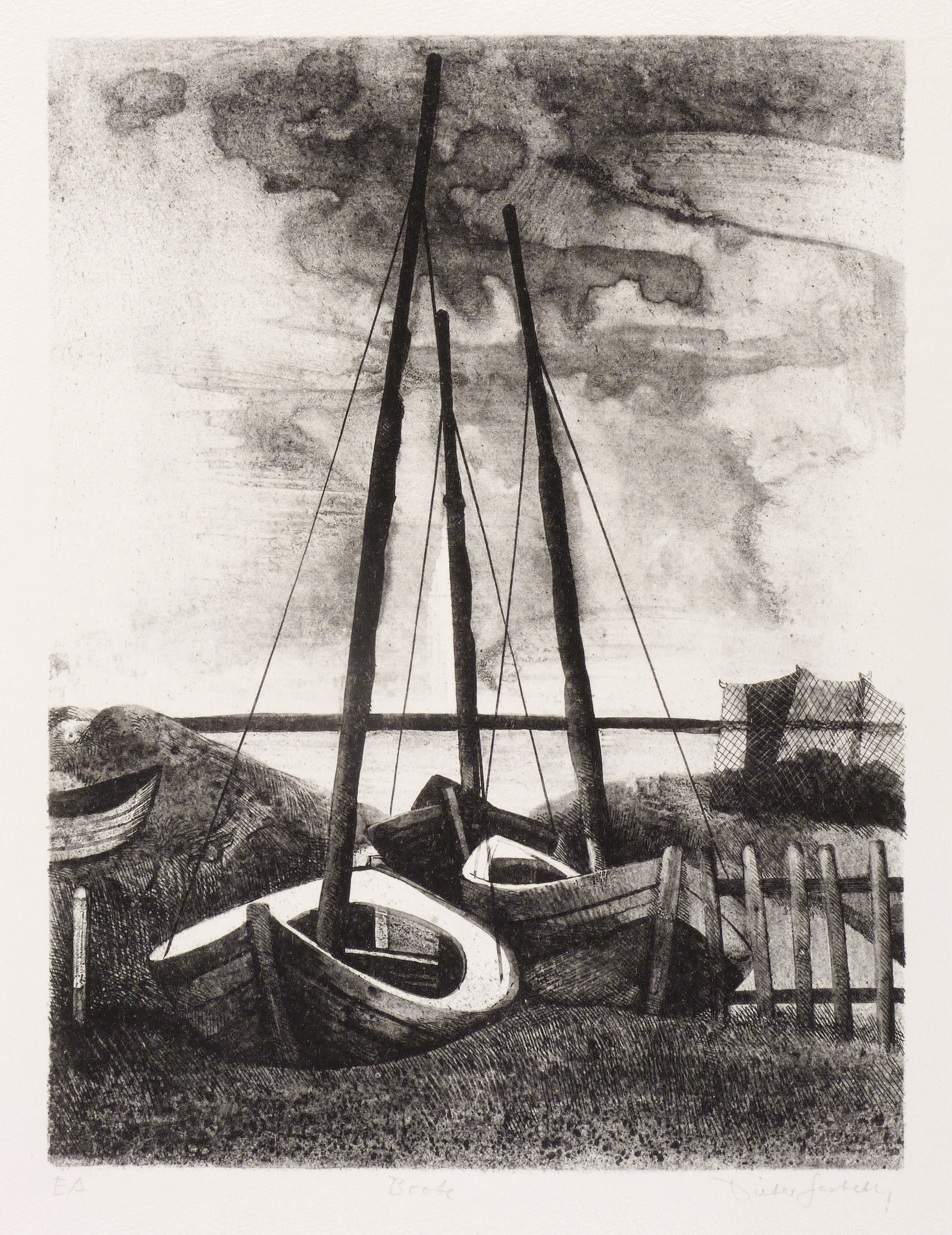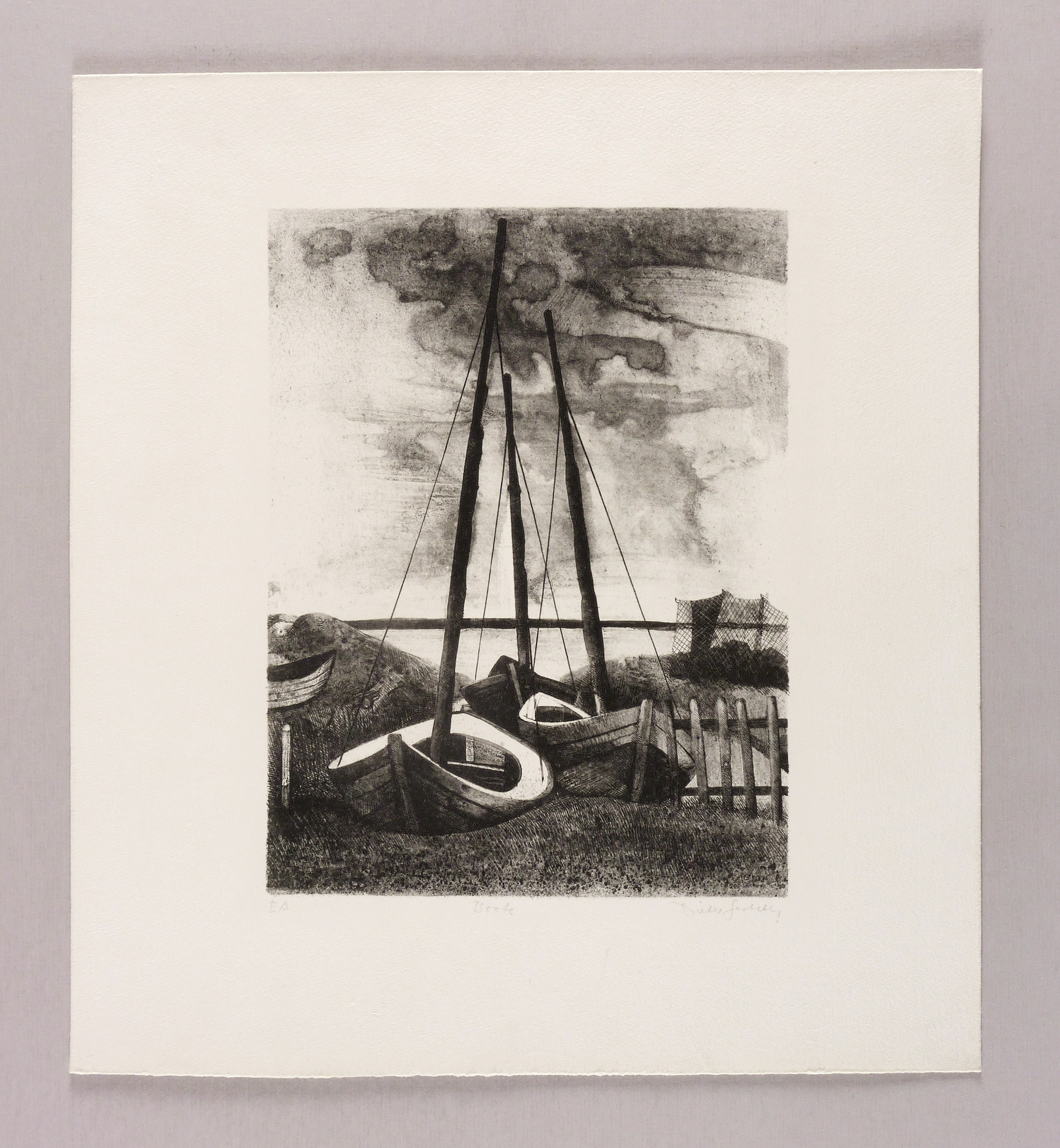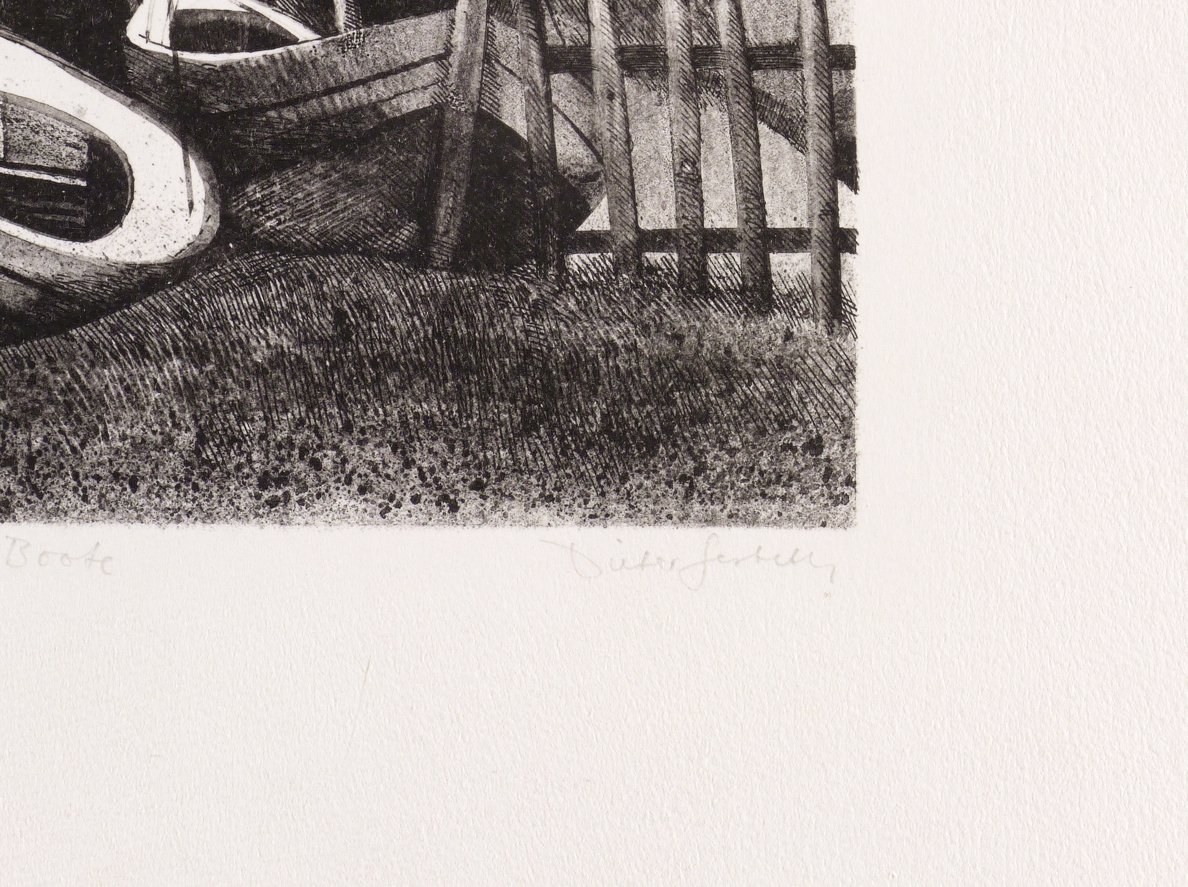 Rechts unten in Bleistift signiert: ″Dieter Gerbeth″. Links Auflagenbezeichnung: ″EA″. Mittig Titel: ″Boote″. – Sehr guter Zustand.