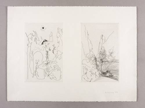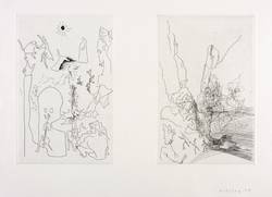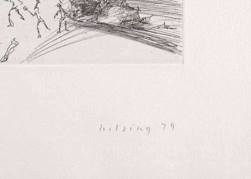 1979. Radierung / Strichätzung, in Schwarz, auf hellchamois Hahnemühle. – Originale Künstlergrafik, von Werner Hilsing. – 24,6 x 15,9 cm (Darstellung / zweite), 40 x 54 cm (Blatt), 24,6 x 15,8 cm (Darstellung / erste).