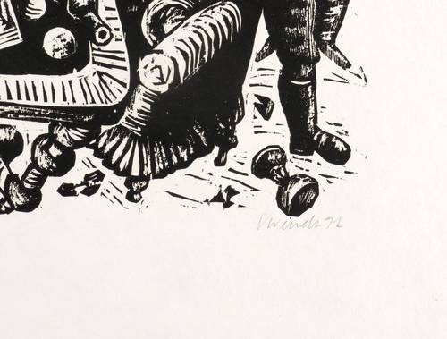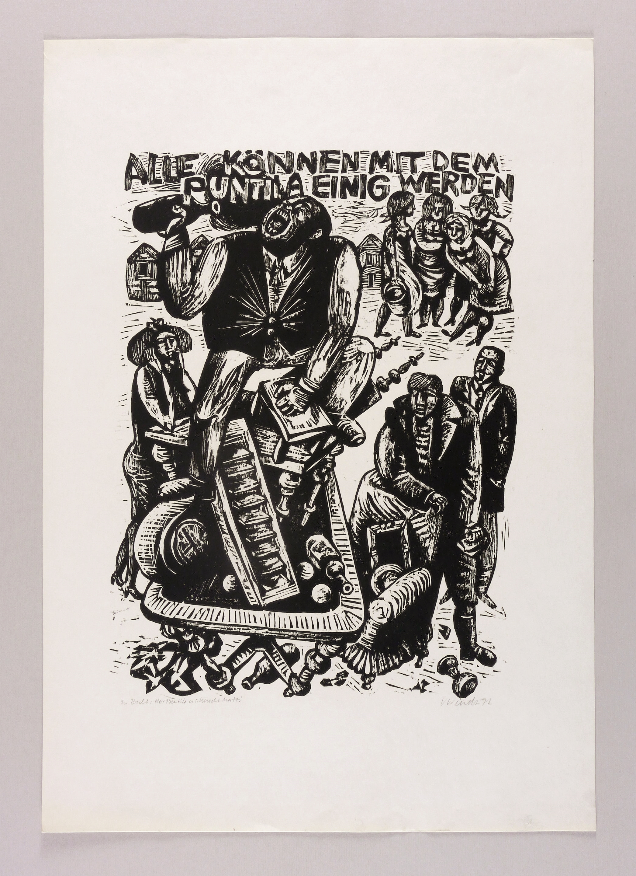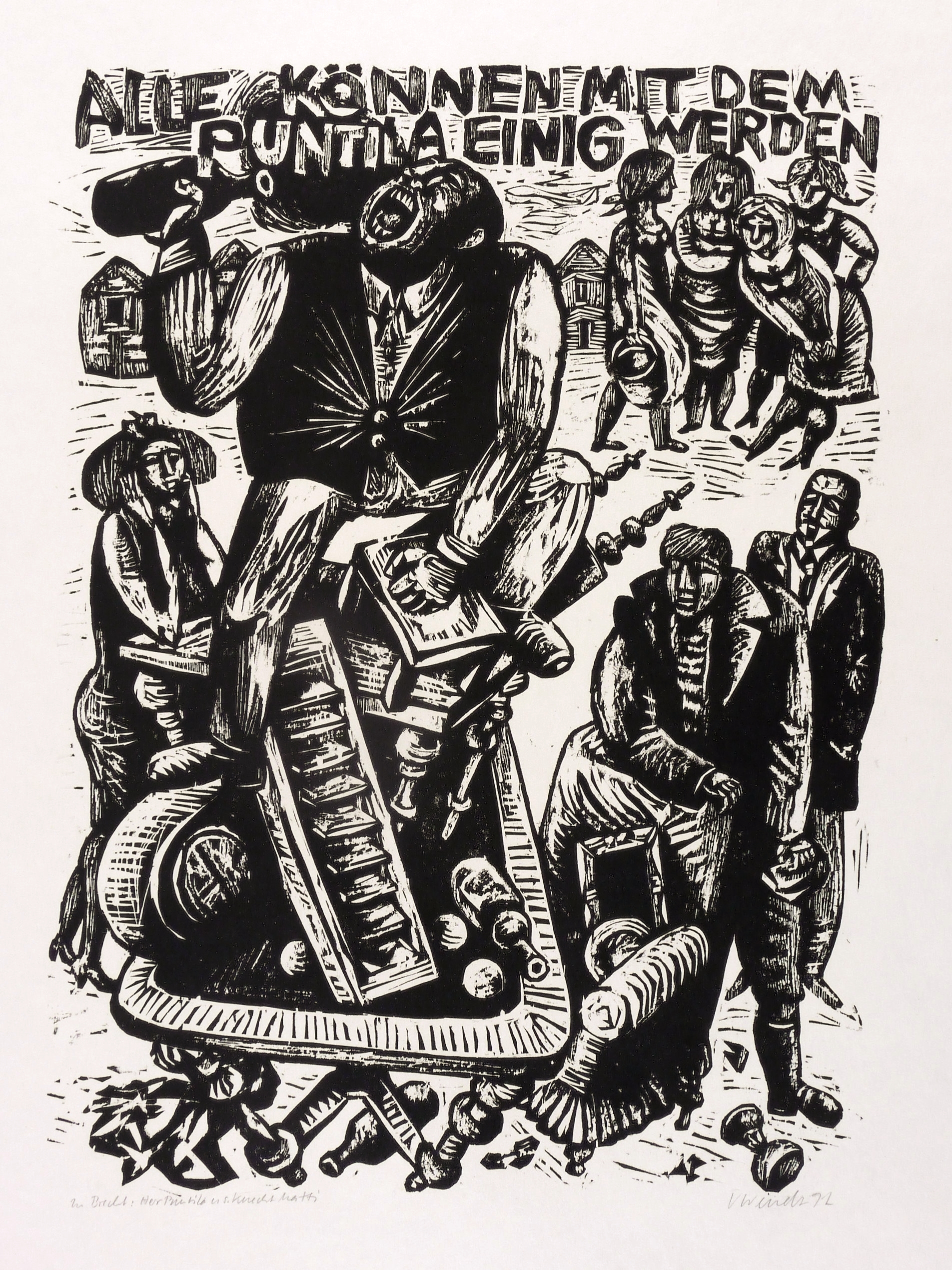Rechts unten in Bleistift signiert und datiert: ″V. Wendt 72″. Links Titel: ″zu Brecht 'Herr Puntila und sein Knecht Matti'″. – Sehr guter Zustand.