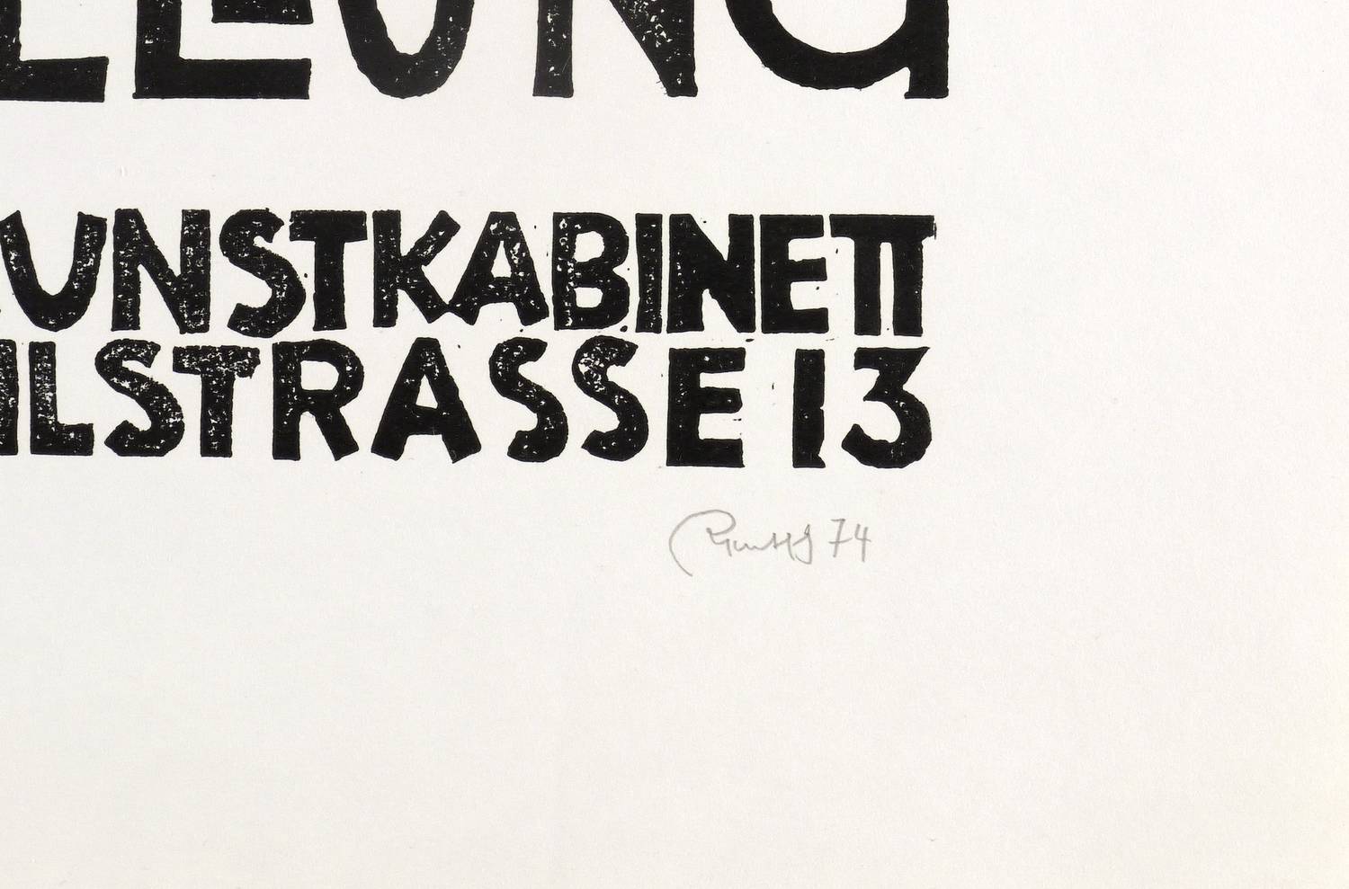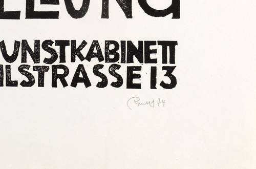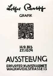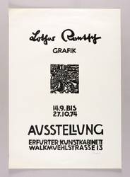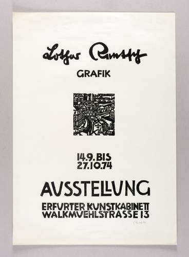 Rechts unten in Bleistift signiert und datiert: ″Rentsch 73″. Links Auflagenbezeichnung und Titel: ″48/100 // Die Brücke″. Dazu bezeichnet: ″Handdruck″. – Originalgrafisches Plakat zur Ausstellung ″Lothar Rentsch. Grafik″ im Erfurter Kunstkabinett 14.9.-27.10.1974. – Der untere Blattrand links leicht bestoßen. Sonst shr guter Zustand.