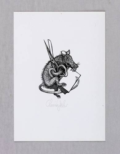 1981/1982. Holzschnitt, in Schwarz, auf glattem hellchamois Werkdruck. – Originale Künstlergrafik, von Christa Jahr. – 6,8 x 5,0 cm (Darstellung / Druckbild), 15 x 11 cm (Blatt).