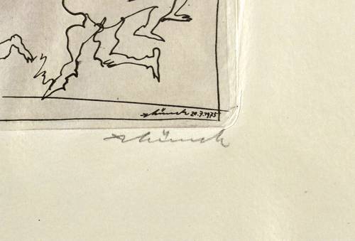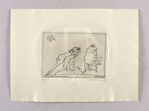Rechts unten in Bleistift signiert: ″AMünch″. Links Auflagenbezeichnung: ″17/25″. In der Platte rechts unten zusätzlich Signatur und Datum: ″Münch 20.7.1975″. Links Inschrift: ″zu Faust: Klassische Walpurgisnacht″. – Tadellos. Sehr guter Zustand.
