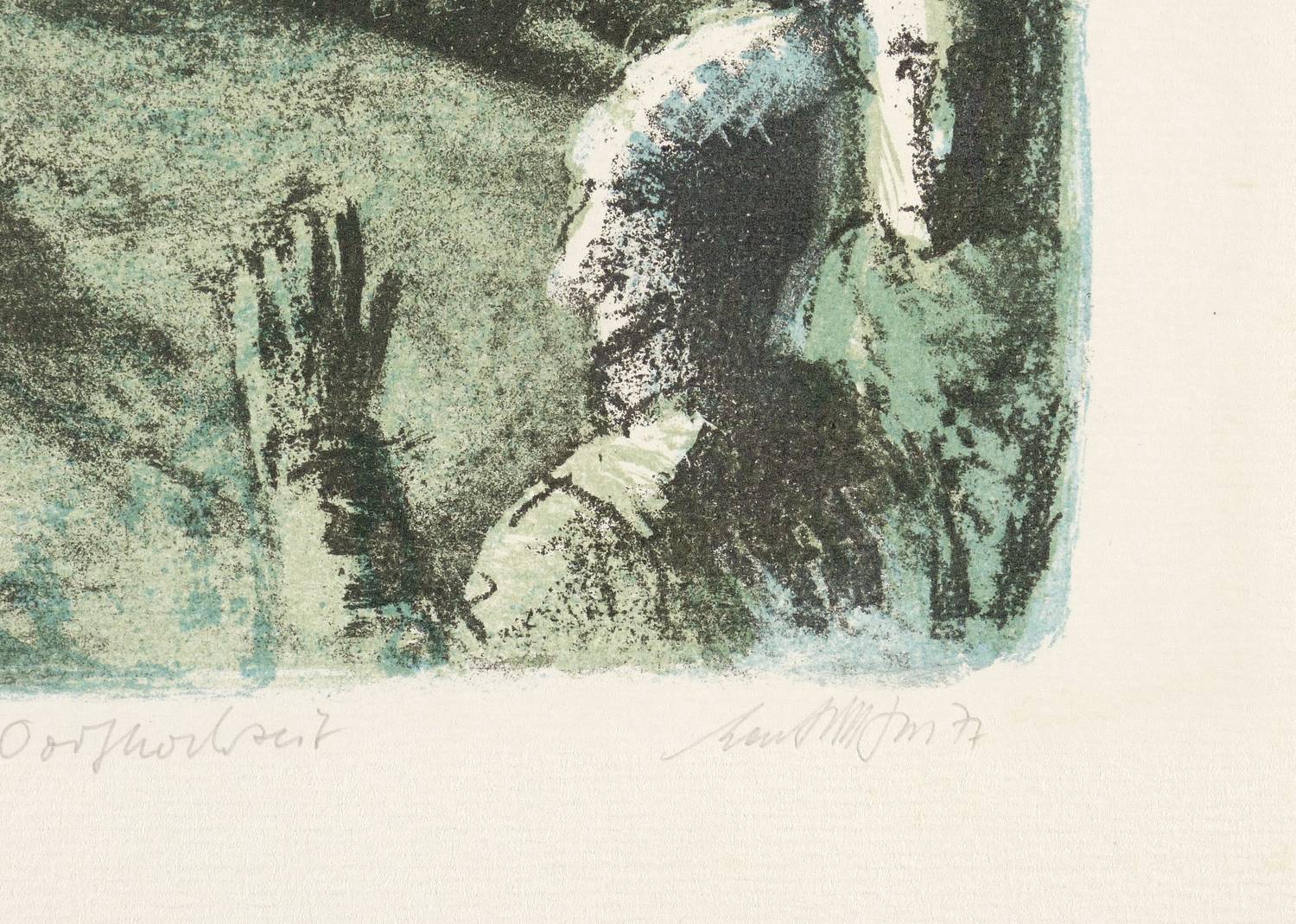 1977. Farblithografie / Kreidelithografie, in 3 Farben, auf hellchamois Weißenborn. – Originale Künstlergrafik, von Joachim Lautenschläger. – Auflage Exemplar Nr. 60/150. – 27,7 x 21,2 cm (Darstellung / Druckbild), 39 x 27 cm (Blatt).