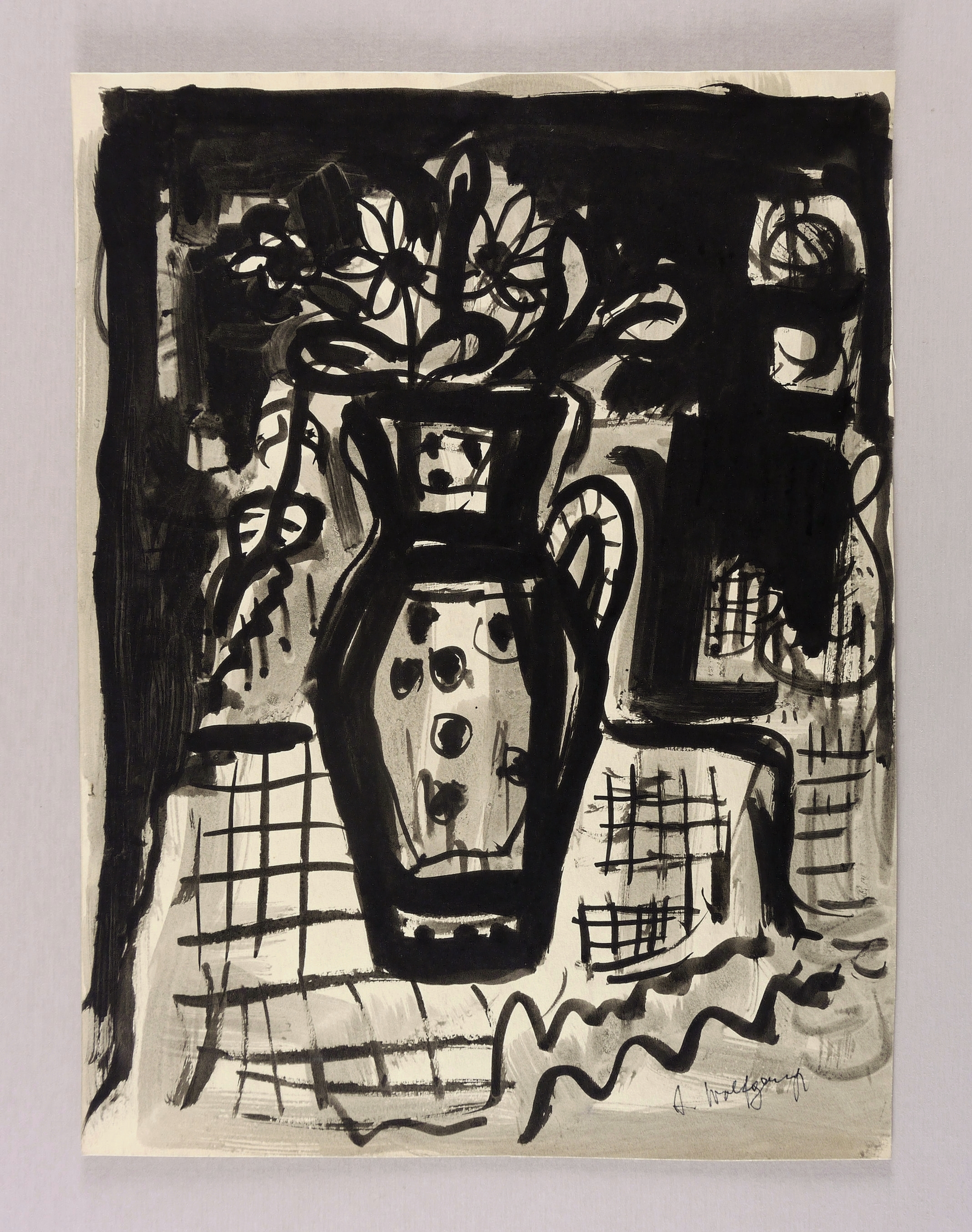 Rechts unten in Faserstift signiert: ″A. Wolfgang″. Verso in Bleistift wohl eigenhändig betitelt: ″Blumenvase″. Dazu Nachlass-Stempel: ″Nachlaß Alexander Wolfgang Gera″. – Sehr guter Zustand.