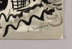 1950-1960. Zeichnung / Pinselzeichnung, in schwarzer Tusche, grau laviert, auf hellchamois Velinkarton. – Originale Künstlergrafik, von Alexander Wolfgang. – Unikat. – 37,0 x 28,0 cm (Darstellung / Blatt).