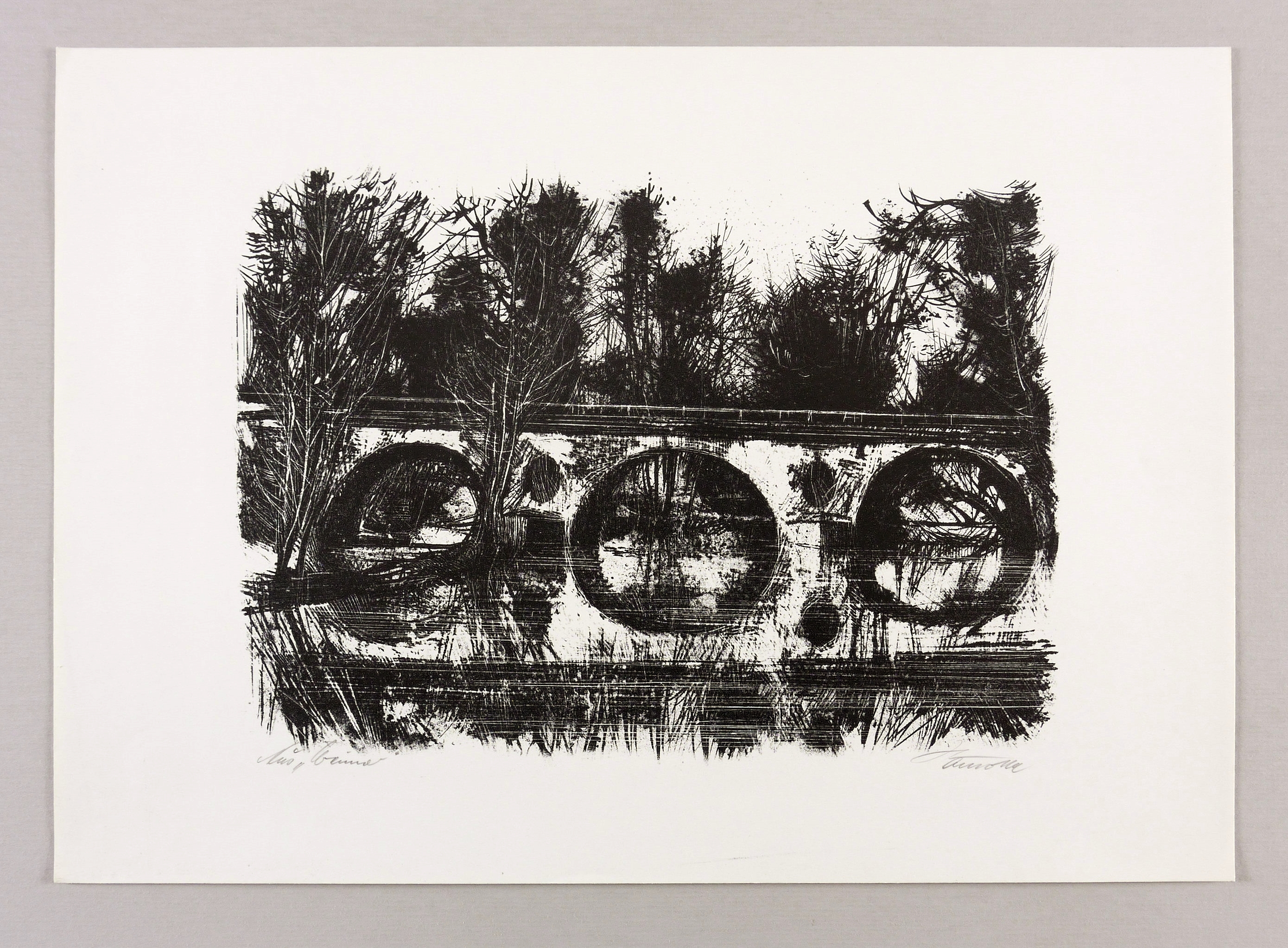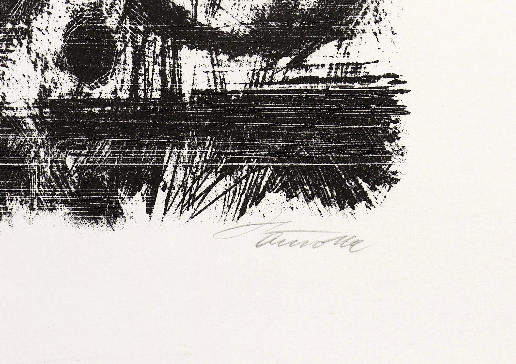 1975. Lithografie / Kreide- & Pinsellithografie, partiell geschabt, in Schwarz, auf weißem Werkdruck. – Originale Künstlergrafik, von Horst Hausotte. – 21,2 x 29,3 cm (Darstellung / Druckbild), 30 x 42 cm (Blatt).