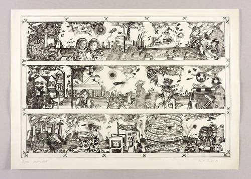 1979. Radierung / Strichätzung, in Schwarz, auf hartem hellchamois Weißenborn. – Originale Künstlergrafik, von Ruth Tesmar. – Auflage Exemplar Nr. 83/100. – 29,8 x 44,0 cm (Darstellung / Platte), 34 x 48 cm (Blatt).