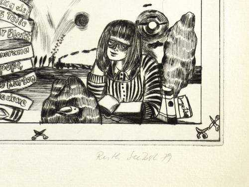 Ruth Tesmar (*1951 Potsdam, lebt und arbeitet in Berlin). Vor der Heirat mit Lutz Tesmar 1984 Ruth Siebert. Deutsche Grafikerin. Studierte Kunstpädagogik und Geschichte an der Humboldt-Universität Berlin. Nach der Promotion 1981 Studium der Malerei und Grafik an der Kunsthochschule Berlin-Weißensee. 1983 Diplom bei Dieter Goltzsche. Seit 1993 künstlerische Leitung des Menzel-Dach's der Humboildt-Universität.
