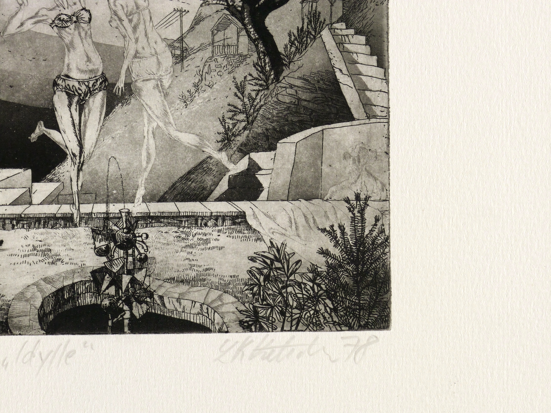 Rechts unten in Bleistift signiert und datiert: ″L Ketscher 78″. Links Auflagenbezeichnung: ″37/II/42″. Dazu Titel: ″Idylle″. – Sehr guter Zustand.