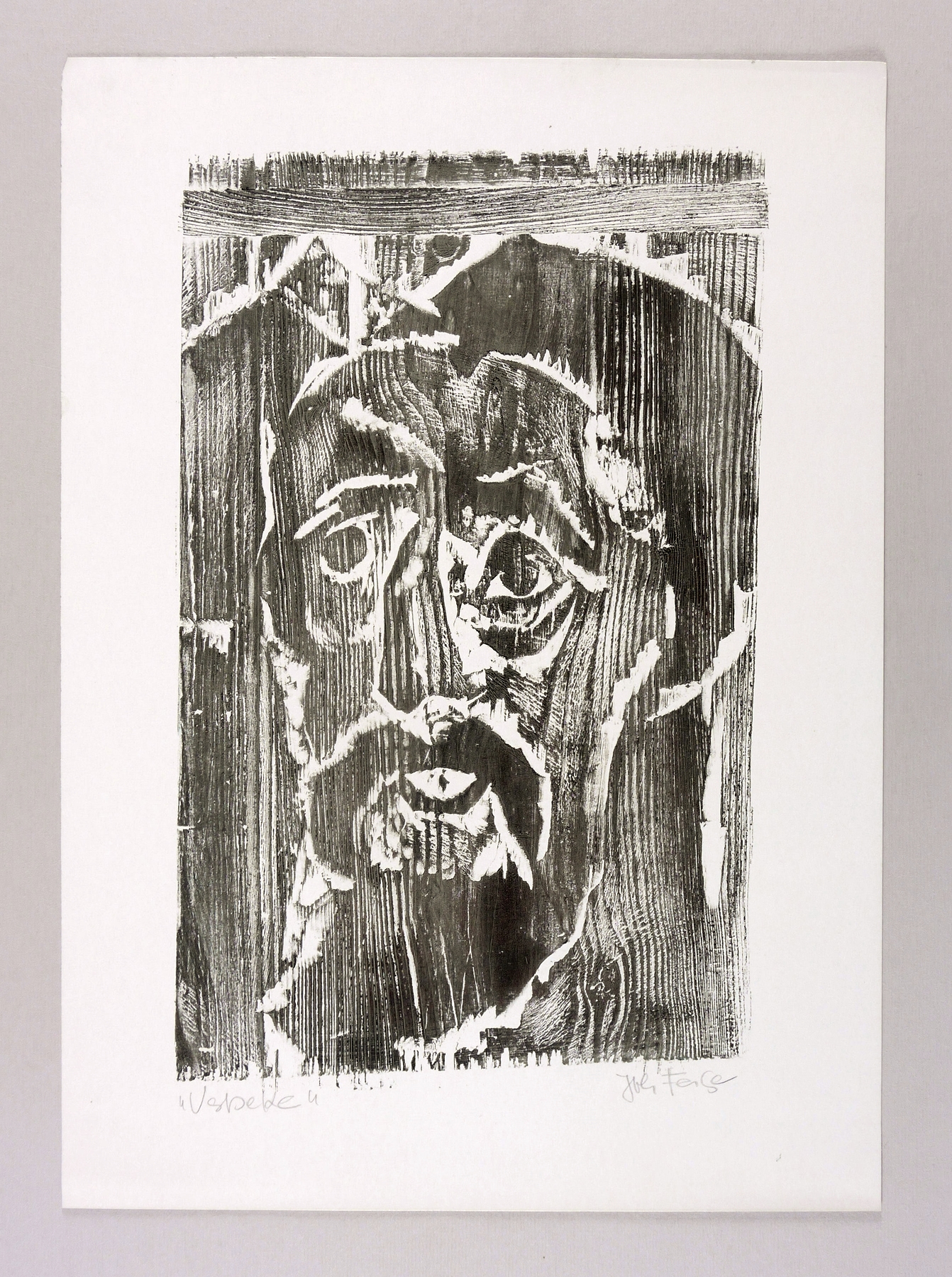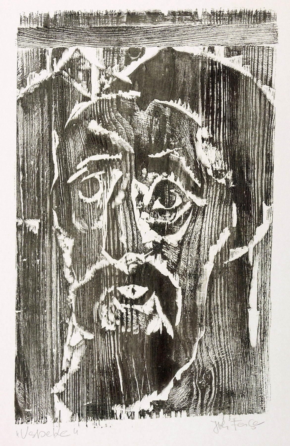 1975-1980. Holzschnitt, in Schwarz, auf glattem weißem Karton. – Originale Künstlergrafik, von Johannes Feige. – 44,0 x 27,6 cm (Darstellung / Druckstock), 55 x 40 cm (Blatt).