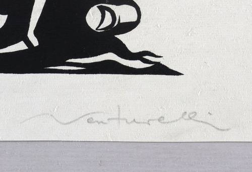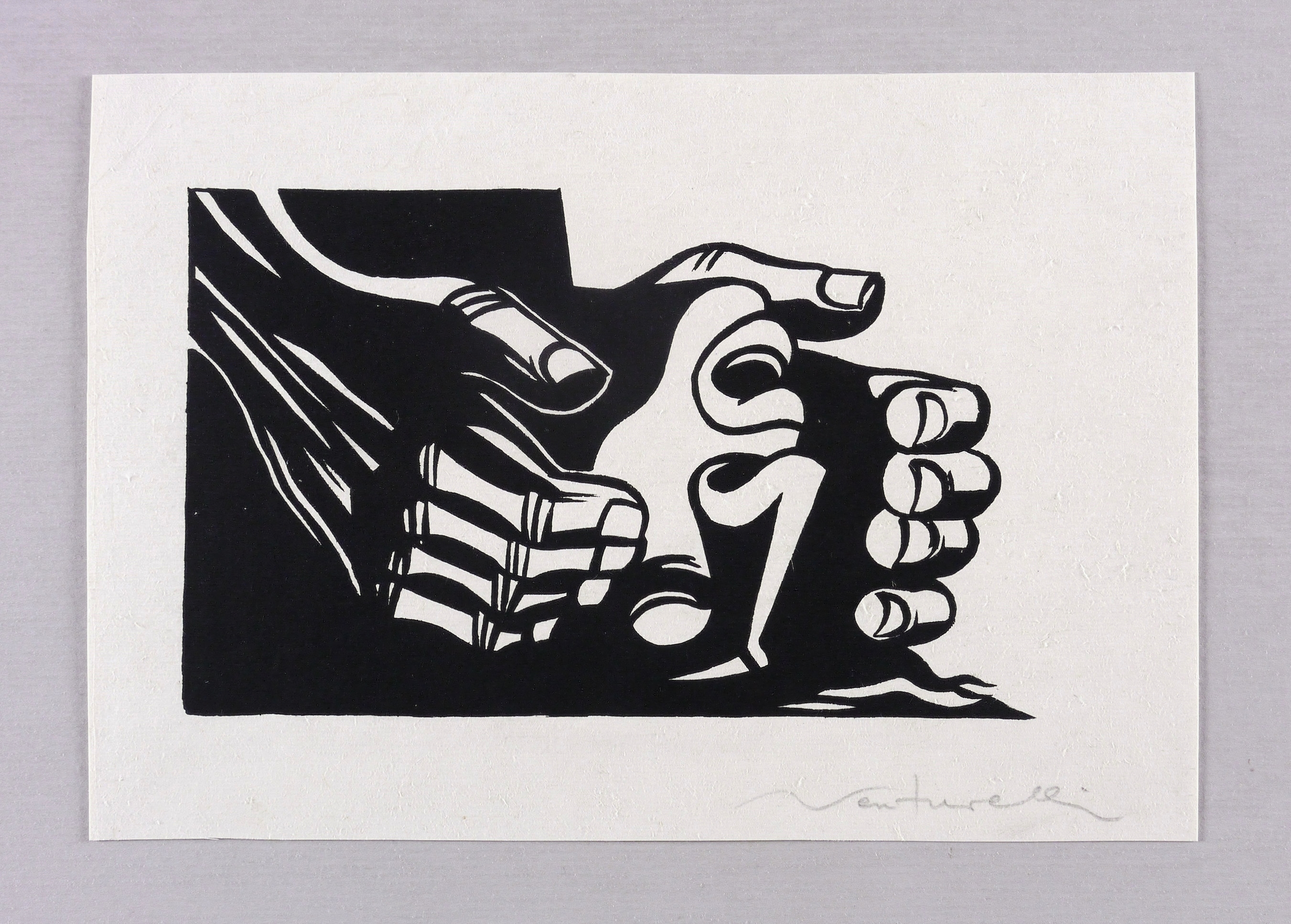 Rechts unten in Bleistift signiert: ″Venturelli″. – Der Holzschnitt steht sowohl stilistisch als auch inhaltlich im Zusammenhang mit den Illustrationen zu ″Patria negra y roja″ (José Venturelli, Genf: Librairie Rousseau 1975). – Provenienz: Sammlung Erhard Frommhold, Dresden. – Tadellos erhalten. Sehr guter Zustand.