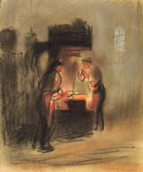 1940-1950. Zeichnung / Kohle & Pastellkreide, auf glattem gelbem Velin. – Originale Künstlergrafik, von Karl Enderlein. – Unikat. – 19,0 x 15,7 cm (Darstellung / Blatt).