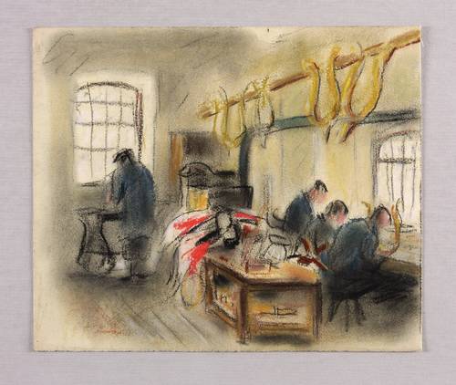 1940-1950. Zeichnung / Kohle & Pastellkreide, auf glattem gelbem Velin. – Originale Künstlergrafik, von Karl Enderlein. – Unikat. – 16,5 x 20,0 cm (Darstellung / Blatt).