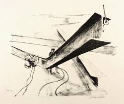 1956. Lithografie / Kreide- & Pinsellithografie, partiell geschabt, in Schwarz, auf feinem hellchamois Velin. – Originale Künstlergrafik, von Hans Escher. – Auflage Exemplar Nr. 3/10. – 30,3 x 34,7 cm (Darstellung / Druckbild), 36 x 51 cm (Blatt).