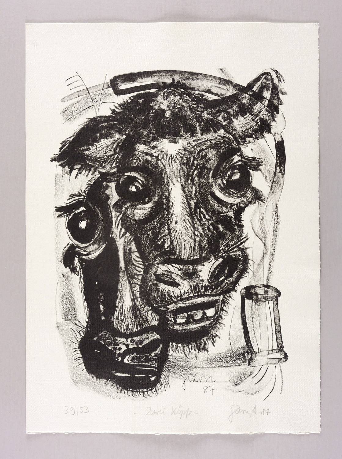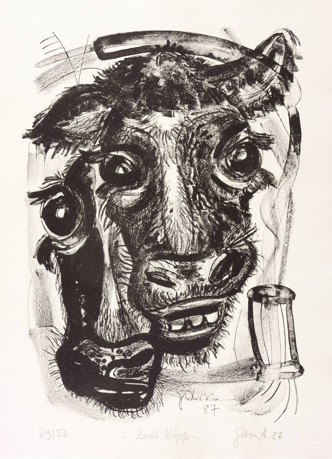 Rechts unten in Bleistift signiert und datiert: ″Garn, A. 87″. Links Auflagenbezeichnung: ″39/53″. Mittig Titel: ″Zwei Köpfe″. Im Stein unten Signatur und Jahr: ″Garn 87″. Wasserzeichen der Hahnemühle. – Sehr guter Zustand.