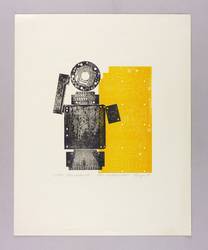 1990. Materialdruck, in Gelb & Schwarz, auf hellchamois Velin. – Originale Künstlergrafik, von Deutsch (20. Jh.). – Auflage Exemplar Nr. 82/100. – 25,4 x 22,3 cm (Darstellung / Druckbild), 50 x 40 cm (Blatt).