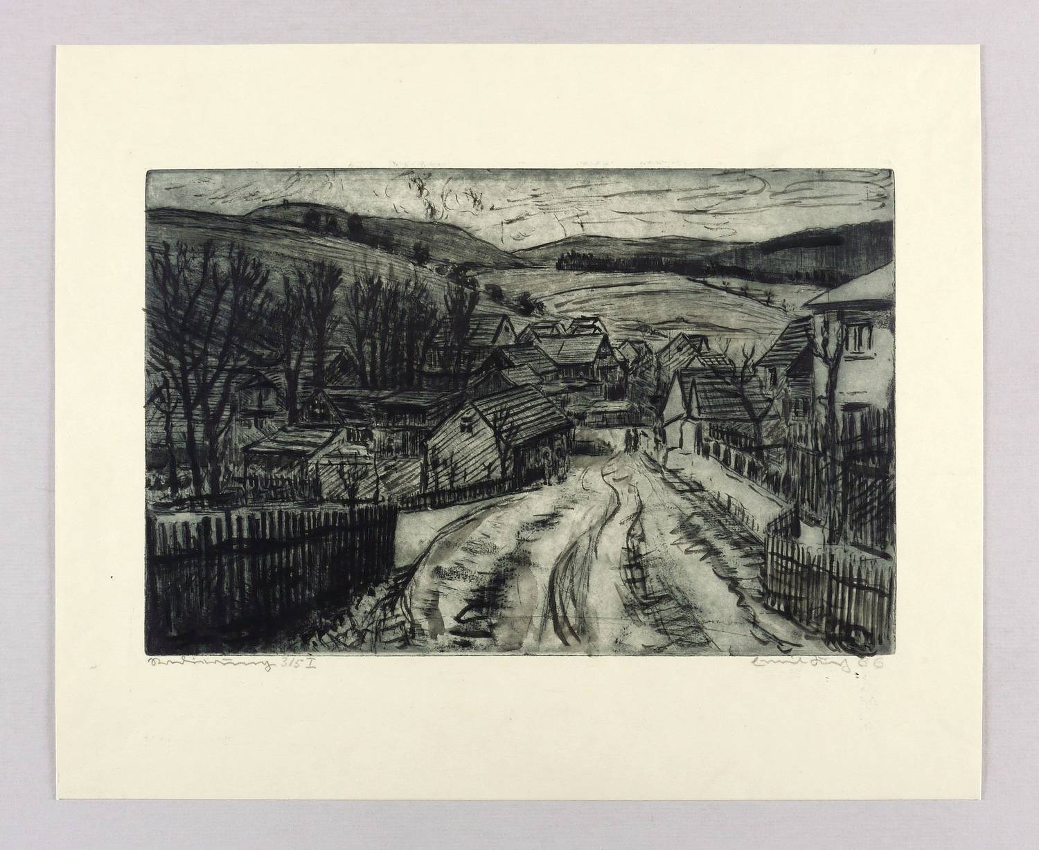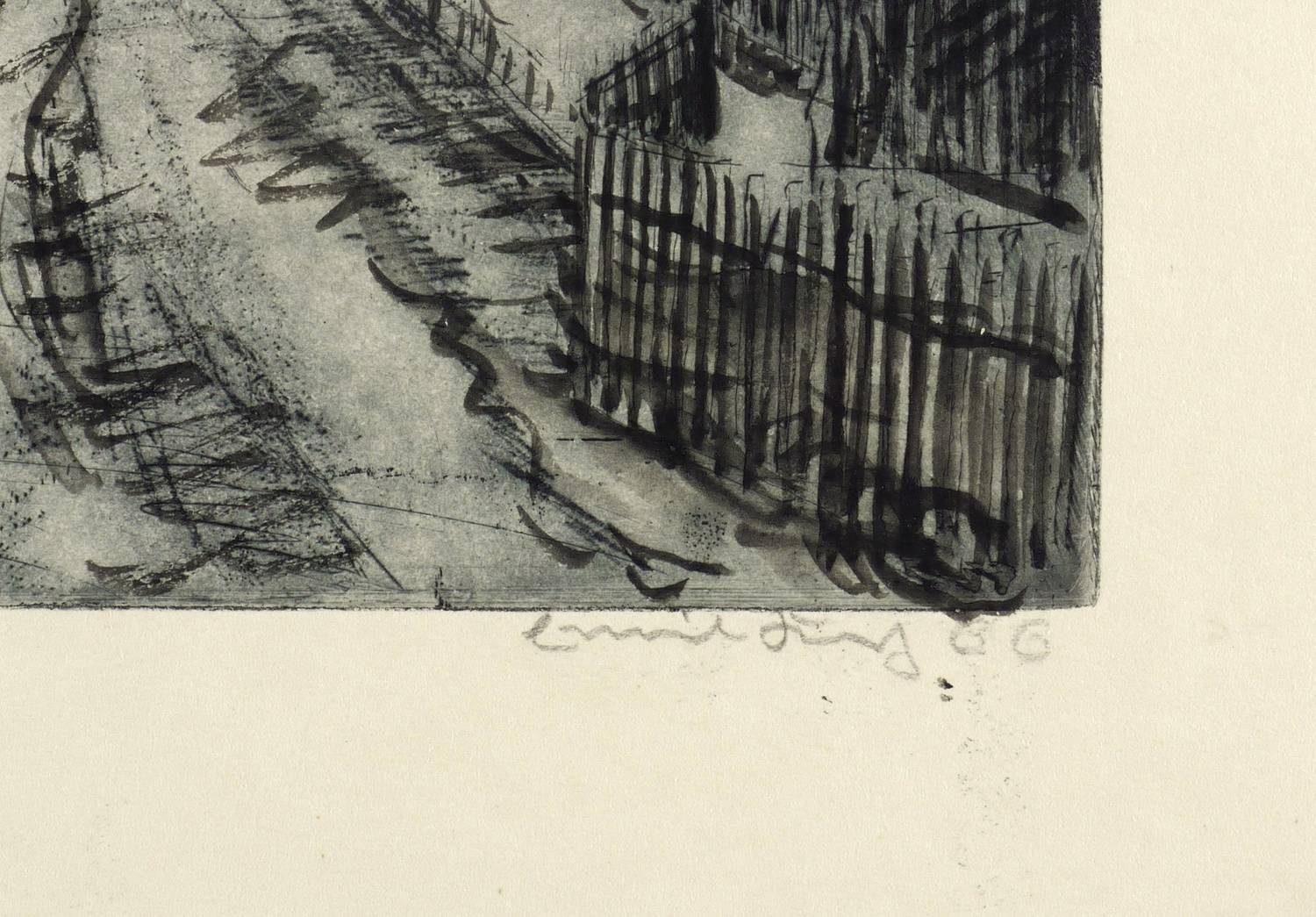 Rechts unten in Bleistift signiert und datiert: ″Emil Krug 66″. Links Auflagenbezeichnung: ″Radierung 3/5 I″. – Sehr guter Zustand.