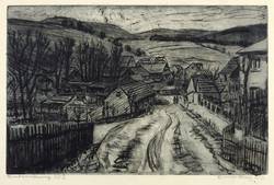 1966. Zeichnung / Pinselzeichnung, in schwarzer Tusche, über Radierung, auf chamois Velinkarton. – Originale Künstlergrafik, von Emil Krug. – Auflage Exemplar Nr. 3/5. – 20,4 x 31,2 cm (Darstellung / Platte), 32 x 39 cm (Blatt).
