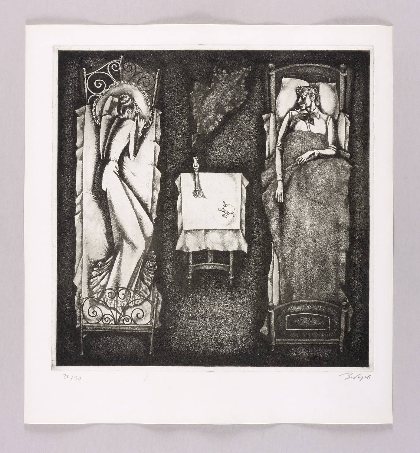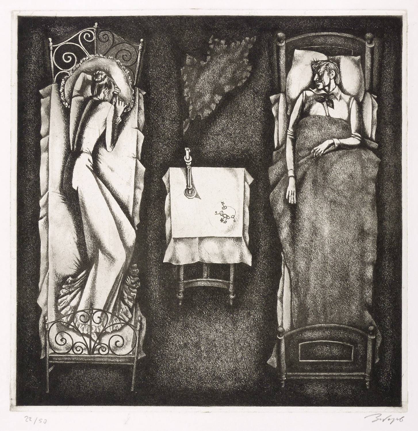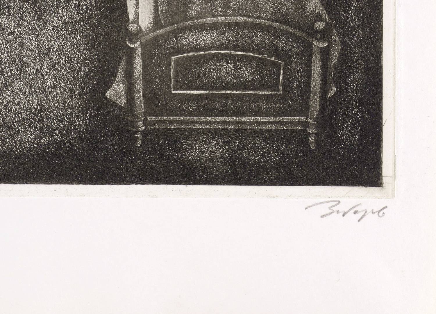 Rechts unten in Bleistift kyrillisch signiert: ″Заборов″. Links Auflagenbezeichnung: ″22/50″. – Illustration für ″Die Sanfte″ von Fjodor Dostojewski (Dresden: Verlag der Kunst 1978). Hier ein Abzug aus der separaten Auflage von 50 Exemplaren. - Druck von Roland Erhard, Dresden. – Sehr guter Zustand.