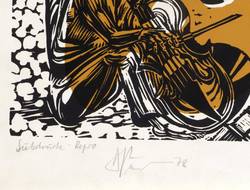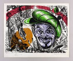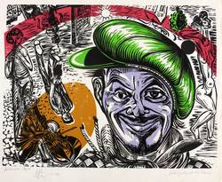 Riediger 465. – Links unten in Bleistift signiert und datiert: ″[A. Pusch?] 78″. ´Dazu Technikbezeichnung: ″Siebdruck-Repro″. Rechts Titel: ″Selbstporträt als Clown″. – Guter Zustand.