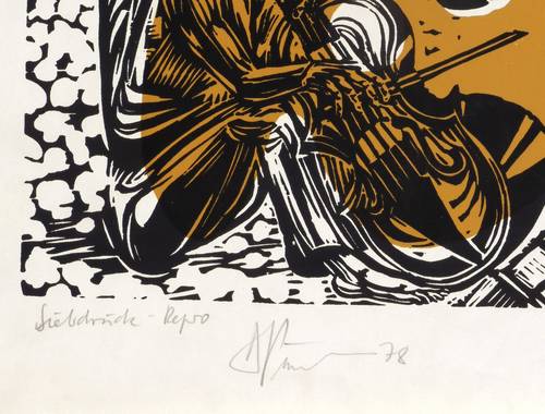 1978. Farbsiebdruck / Farbserigrafie, in 5 Farben, auf leichtem hellchamois Velin. – Originale Künstlergrafik, von Deutsch (20. Jh.). – 37,1 x 48,8 cm (Darstellung / Druckbild), 43 x 51 cm (Blatt).