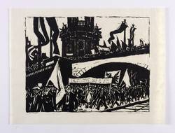 Um 1970. Holzschnitt, in Schwarz, auf rauem weißlichem Similijapan. – Originale Künstlergrafik, von Horst Jockusch. – 25,8 x 33,3 cm (Darstellung / Druckbild), 31 x 42 cm (Blatt).