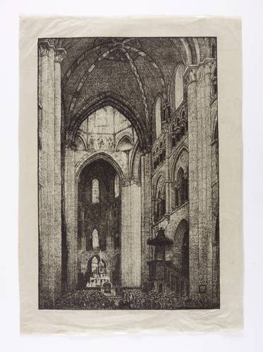 Rechts unten in Bleistift signiert: ″Ferdinand Steiniger.″ Links Titel: ″Im Dom zu Limburg (a.d. Lahn).″ Im Stein rechts unten Monogramm und Jahr: ″FST 1919″. – Papier etwas knickspurig. Sonst sehr guter Zustand.