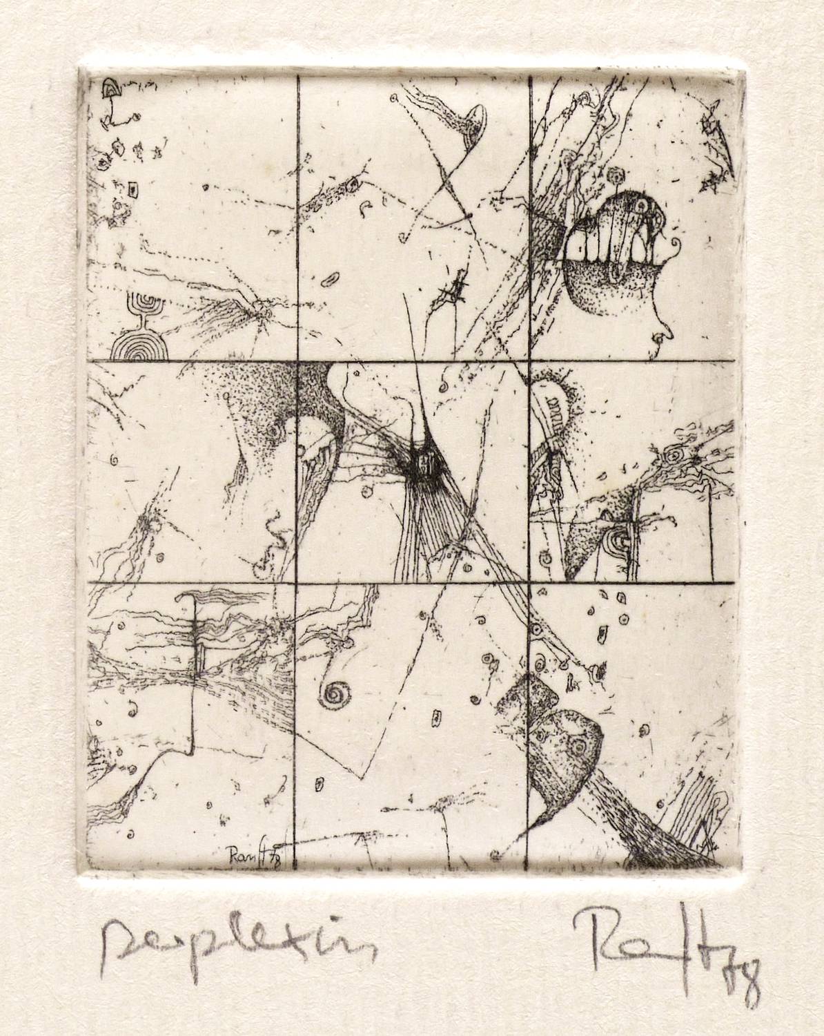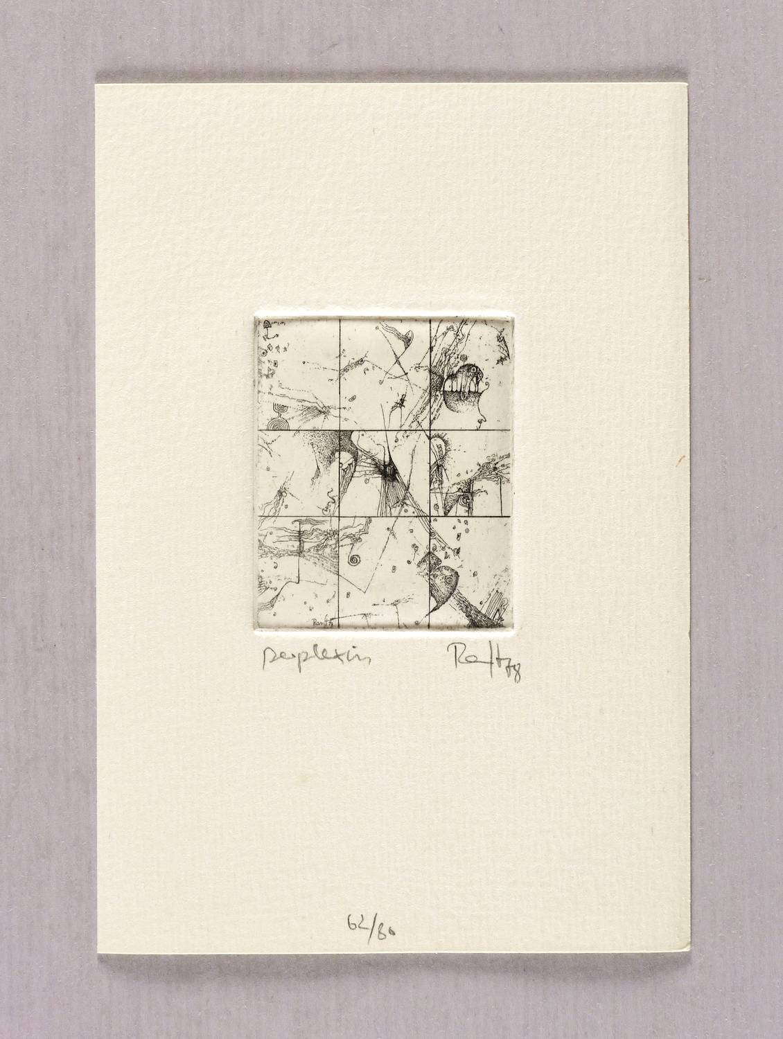 Rechts unten in Bleistift signiert und datiert: ″Ranft 78″. Links bezeichnet: ″Perplexum″. Im unteren Blattrand Auflagenbezeichnung: ″62/80″. – Sehr guter Zustand.