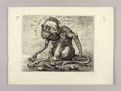 Curt Großpietsch (1893 Leipzig – 1980 Dresden). Auch Kurt Grosspietsch. Deutscher Maler und Illustrator. 1909-14 Studium bei Richard Müller an der Dresdner Kunstakademie, zusammen mit George Grosz und Otto Dix. Orientierte sich an Alfred Kubin und dessen Symbolismus. Stellte in seinen Bildern oft das überspitzt Groteske, Alptraumhafte und Überzogene dar.