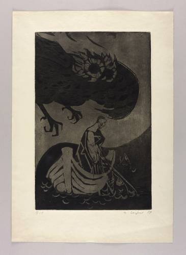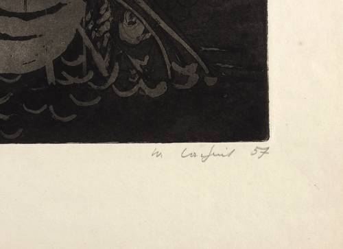1957. Radierung / Aquatinta, in Schwarz, auf festem chamois Velinkarton. – Originale Künstlergrafik, von Wilhelm Lachnit. – Auflage Exemplar Nr. 3/15. – 49,7 x 32,4 cm (Darstellung / Platte), 64 x 45 cm (Blatt).