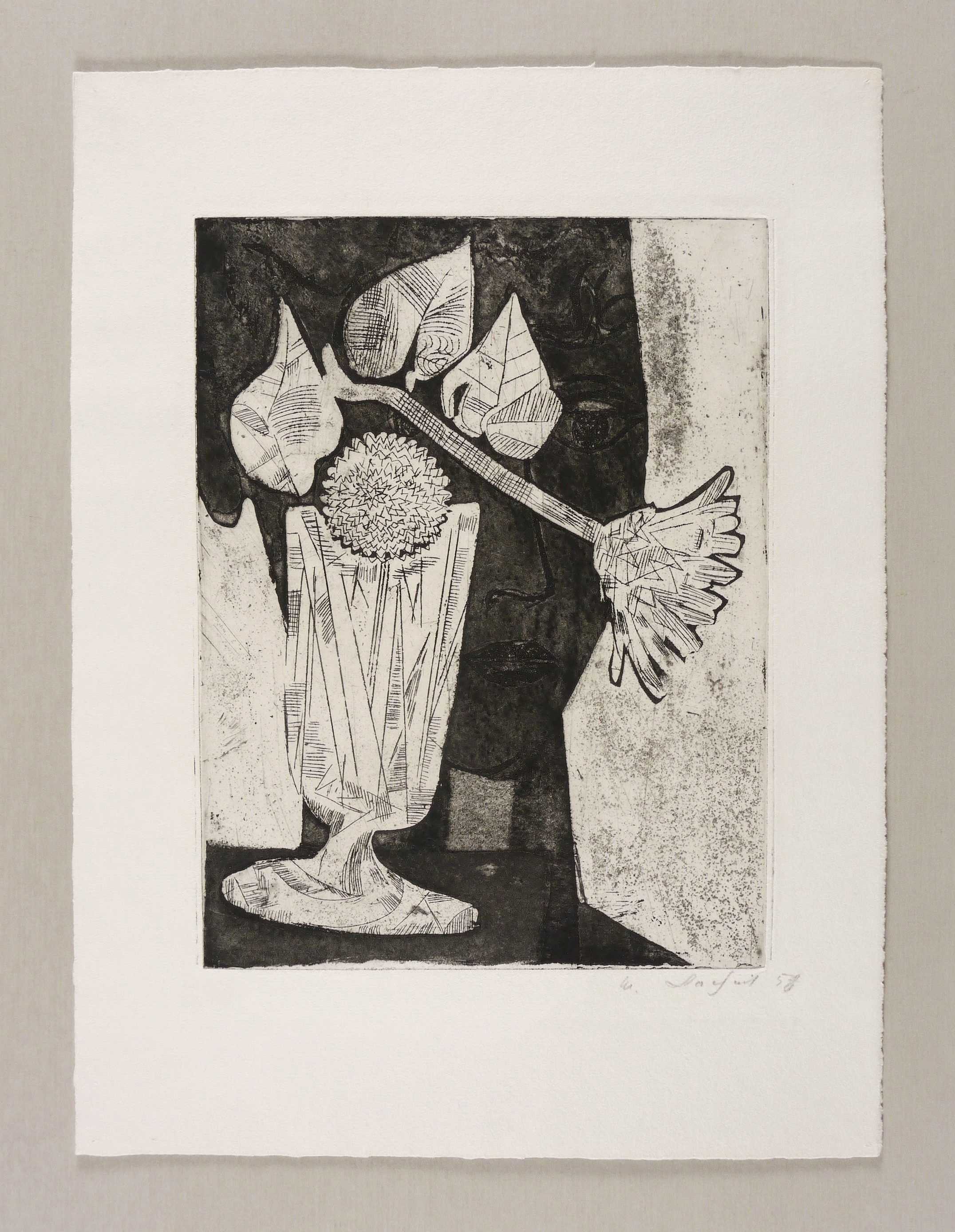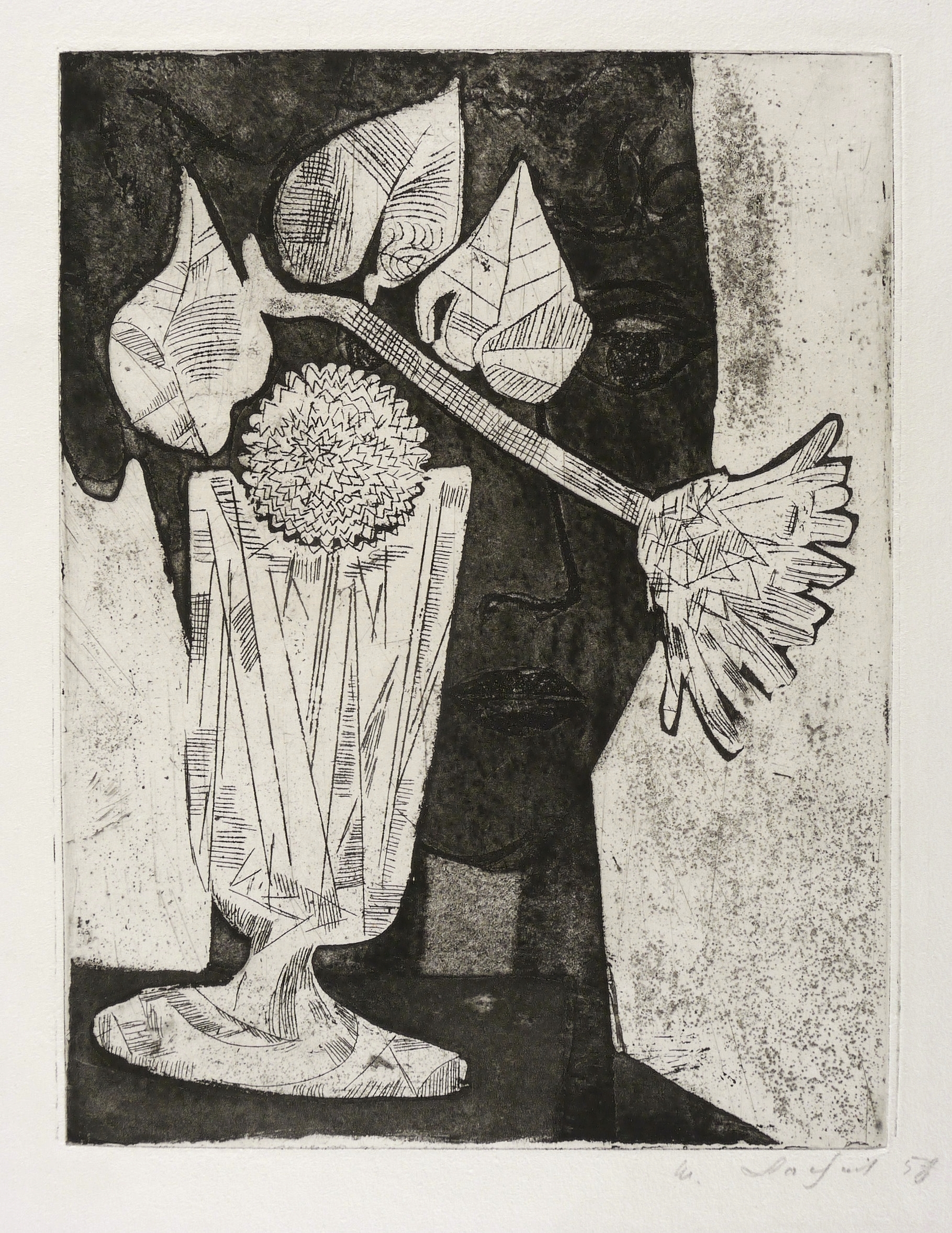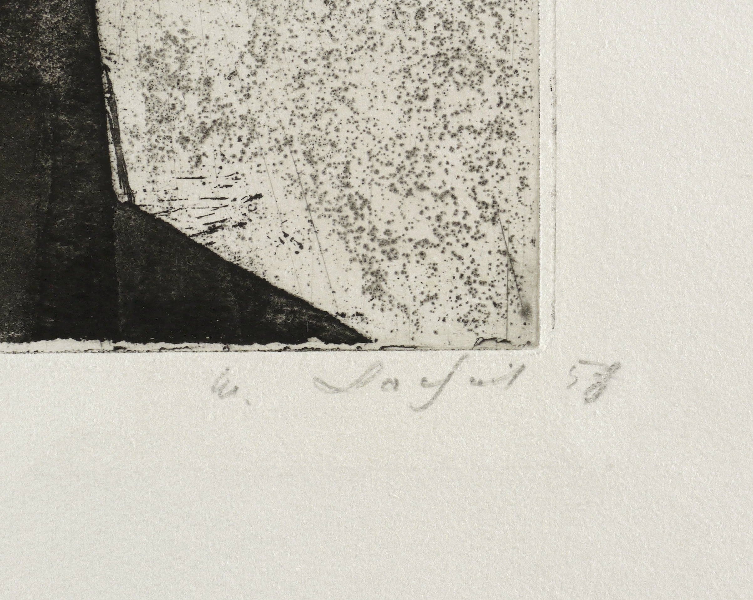 1958. Radierung / Aquatinta, in Schwarz, auf feinem hellchamois Velin. – Originale Künstlergrafik, von Wilhelm Lachnit. – 24,4 x 18,5 cm (Darstellung / Platte), 36 x 27 cm (Blatt).