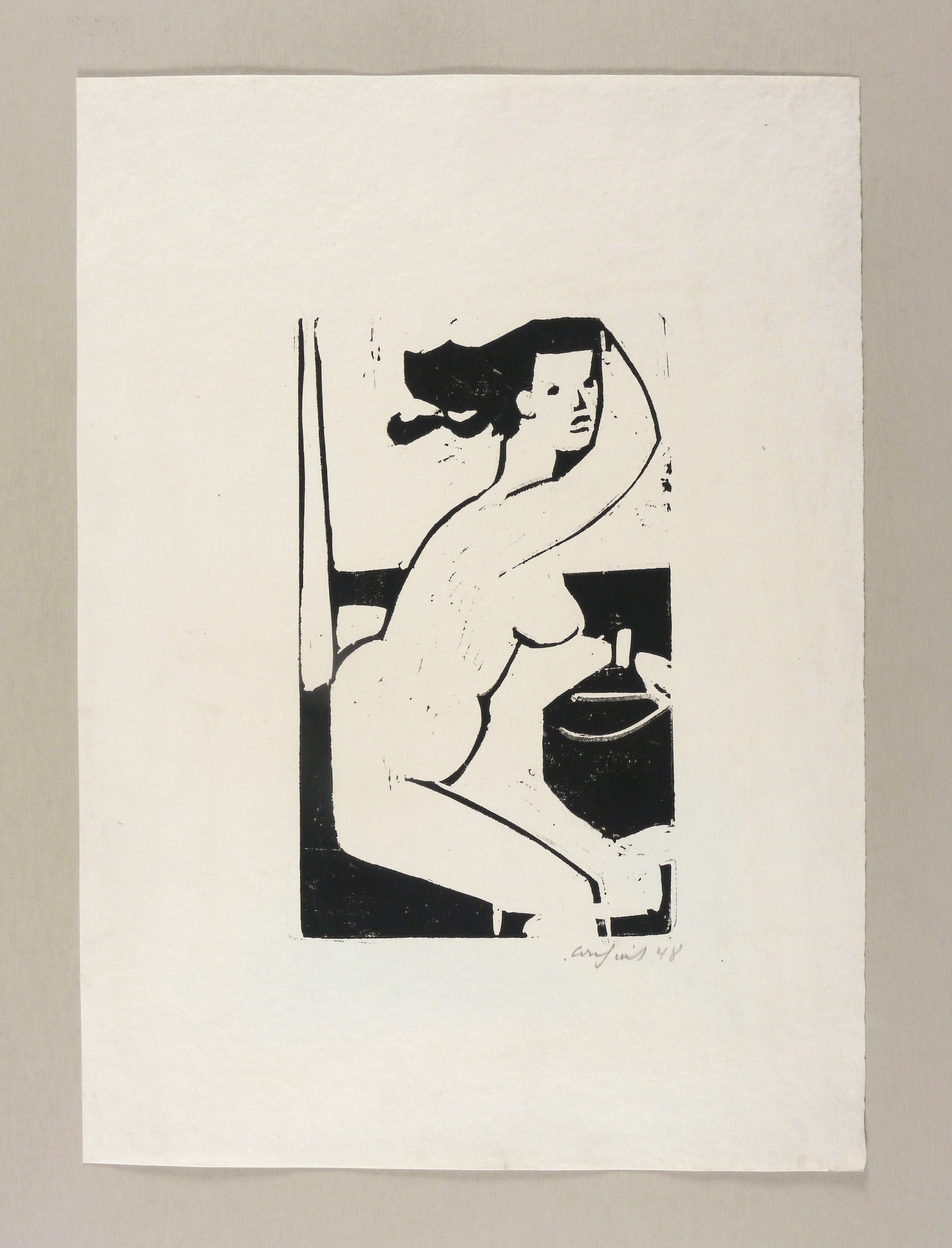 1948. Holzschnitt, in Schwarz, auf feinem hellchamois Velin. – Originale Künstlergrafik, von Wilhelm Lachnit. – 24,0 x 14,4 cm (Darstellung / Druckbild), 43 x 31 cm (Blatt).