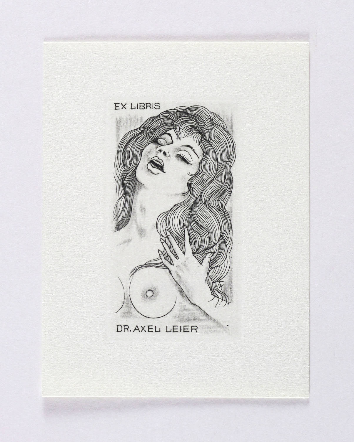 Nicht handsigniert. In der Platte Inschrift: ″EX LIBRIS DR. AXEL LEIER″. Verso in Bleistift bezeichnet: ″Fritz Kühn″. – Sehr guter Zustand.