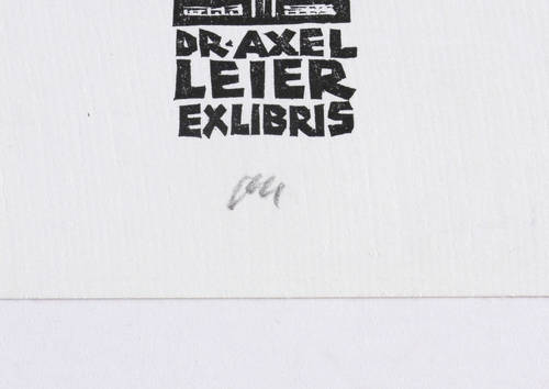 Unterhalb in Bleistift signiert: ″Ott″. Im Druckstock geschnittene Inschrift: ″DR. AXEL LEIER EXLIBRIS″. – Ohne Mängel. Sehr guter Zustand.