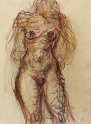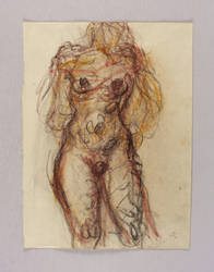 1970-1980. Zeichnung / Kohle & Fettkreide, partiell geschabt, auf gelbem Velin. – Originale Künstlergrafik, von Peter Kaiser. – Unikat. – 26,7 x 19,6 cm (Darstellung / Blatt).