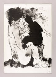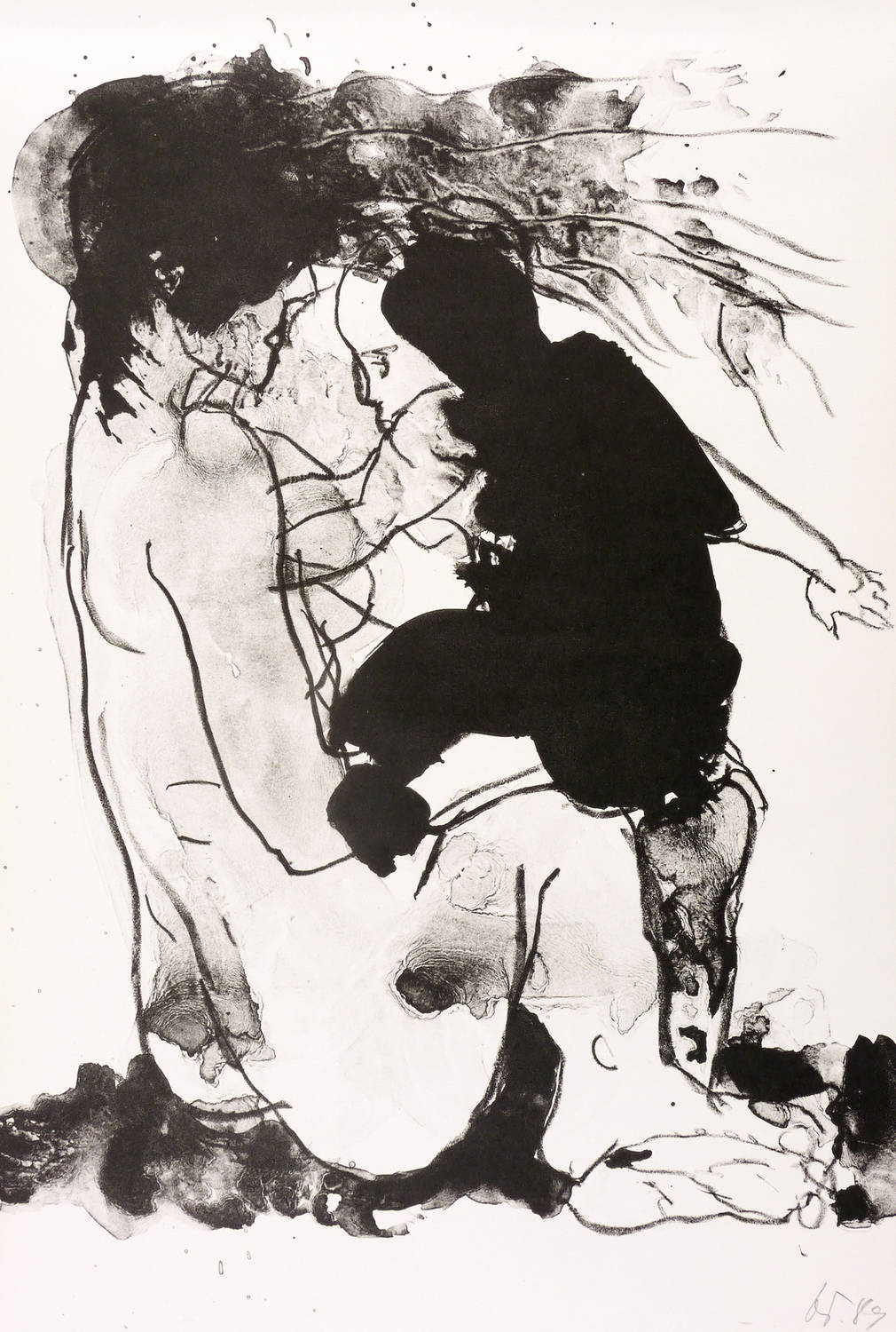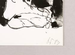 1989. Algrafie / Pinsel- & Federalgrafie, in Schwarz, auf glattem weißem Velin. – Originale Künstlergrafik, von Gudrun Trendafilov. – 44,5 x 30,2 cm (Darstellung / Blatt).
