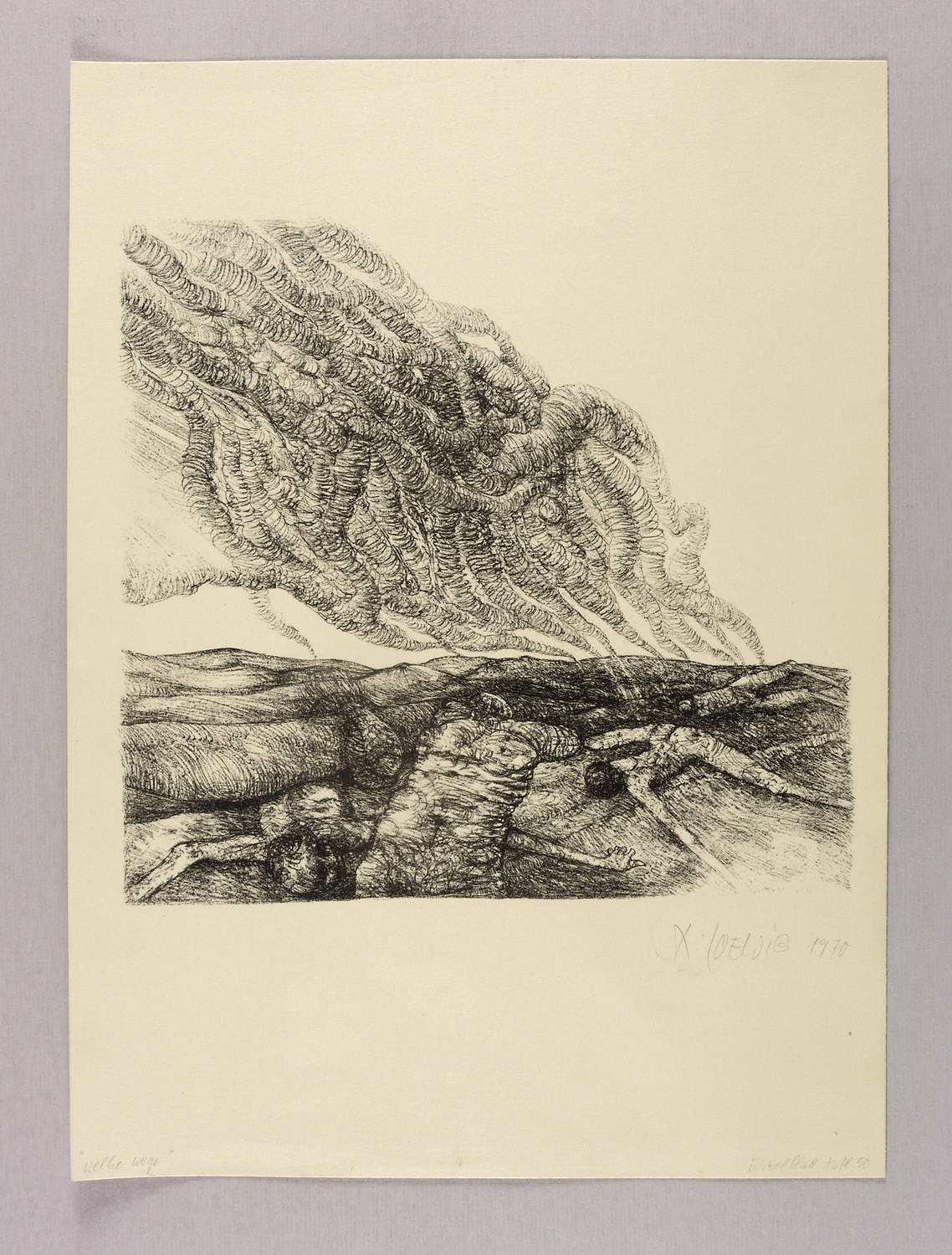 Rechts unten in Bleistift signiert und datiert: ″R. LOEWIG 1970″. In der linken unteren Blattecke Titel: ″Welke Wege″. Rechts bezeichnet: ″Einzelblatt Aufl. 50″. – Sehr guter Zustand.