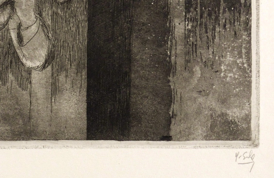 1966. Radierung / Aquatinta & Strichätzung, in Schwarz, auf hellchamois Velinkarton. – Originale Künstlergrafik, von Hans Escher. – Auflage Exemplar Nr. 3/20. – 24,9 x 39,8 cm (Darstellung / Platte), 38 x 54 cm (Blatt).