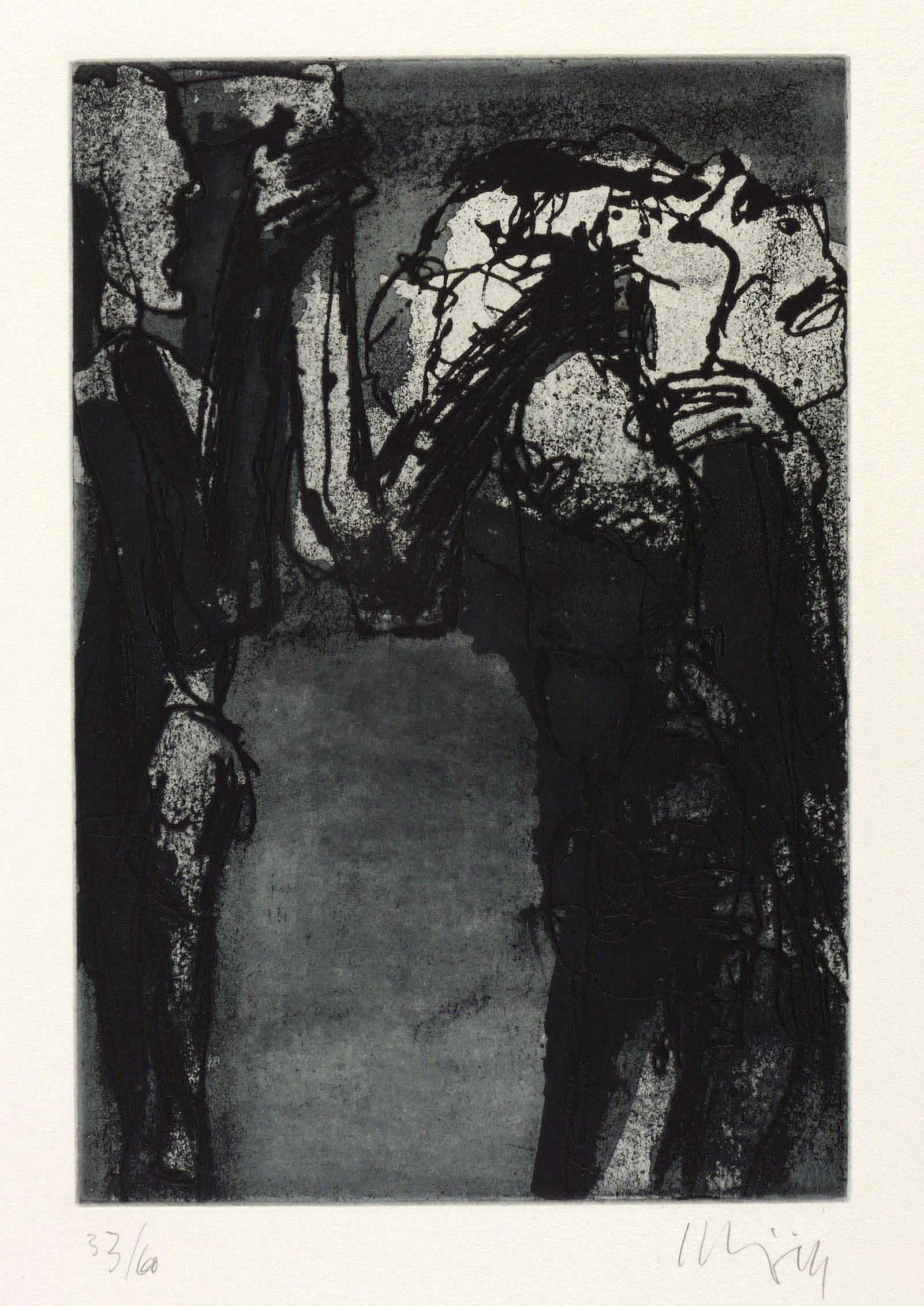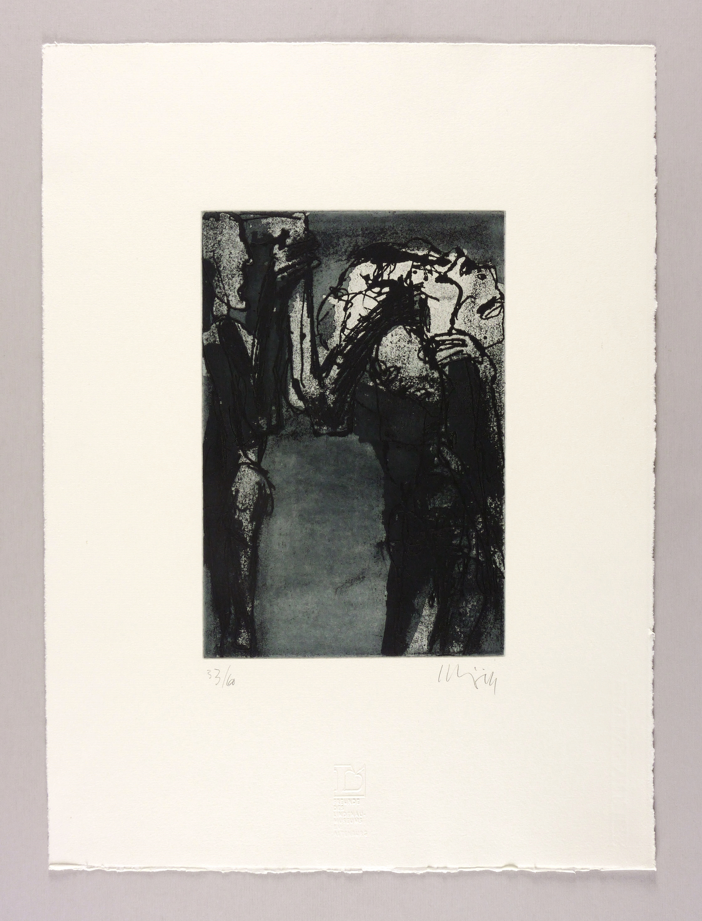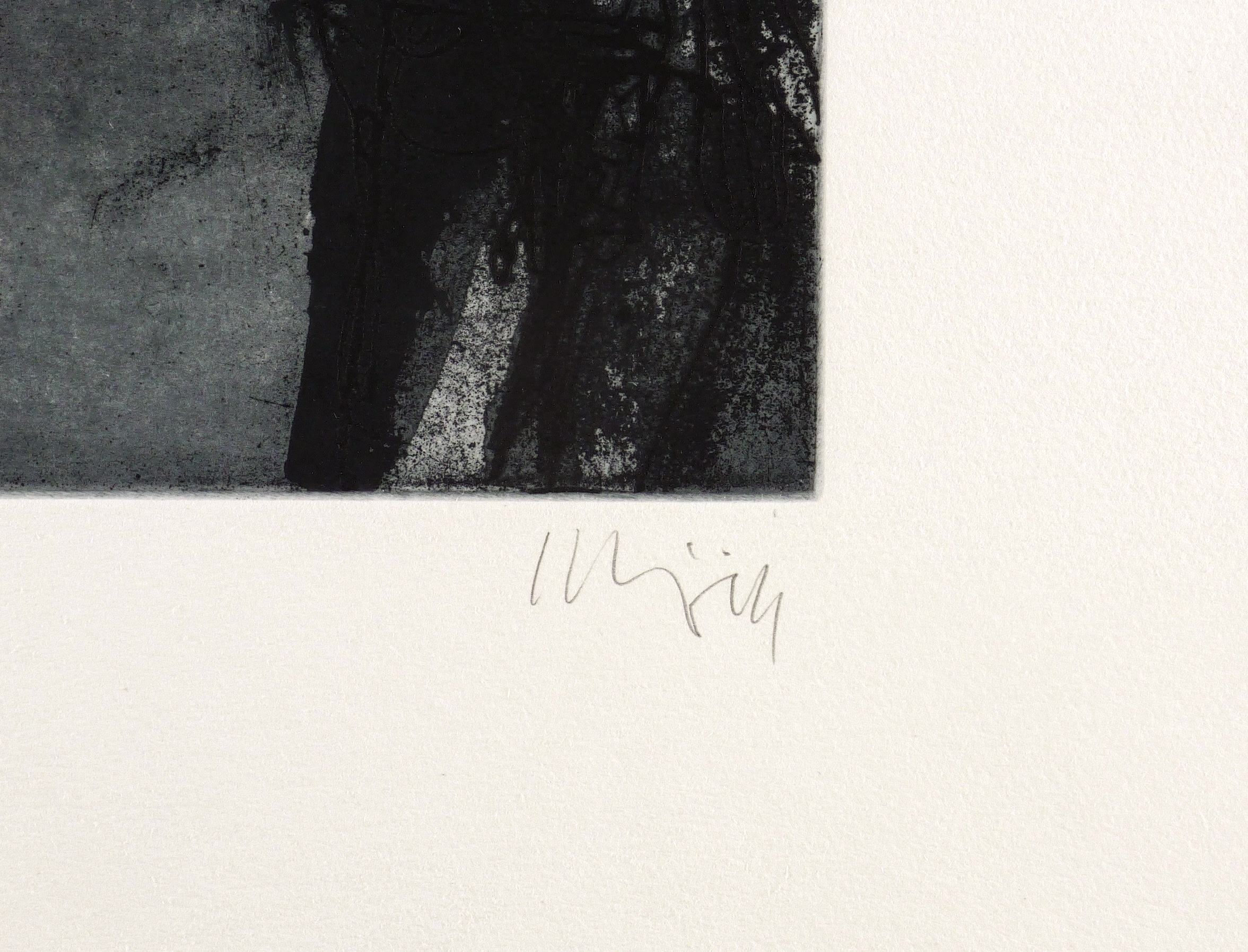 1990-2000. Radierung / Aquatinta & Reservage, in Blauschwarz, auf schwerem hellchamois Hahnemühle. – Originale Künstlergrafik, von Peter Schnürpel. – Auflage Exemplar Nr. 33/60. – 29,1 x 19,8 cm (Darstellung / Platte), 54 x 40 cm (Blatt).
