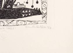 1977. Lithografie / Kreidelithografie, in Schwarz, auf hellchamois Weißenborn. – Originale Künstlergrafik, von Claudia Kutzera. – Auflage Exemplar Nr. 12/20. – 29,3 x 23,9 cm (Darstellung / Druckbild), 47 x 39 cm (Blatt).