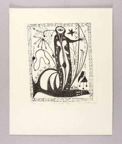 Rechts unten in Bleistift signiert und datiert: ″Claudia Kutzera 1977″. Links Auflagenbezeichnung: ″12/20″. Mittig Titel: ″Erotisierte Welt″. – Sehr guter Zustand.