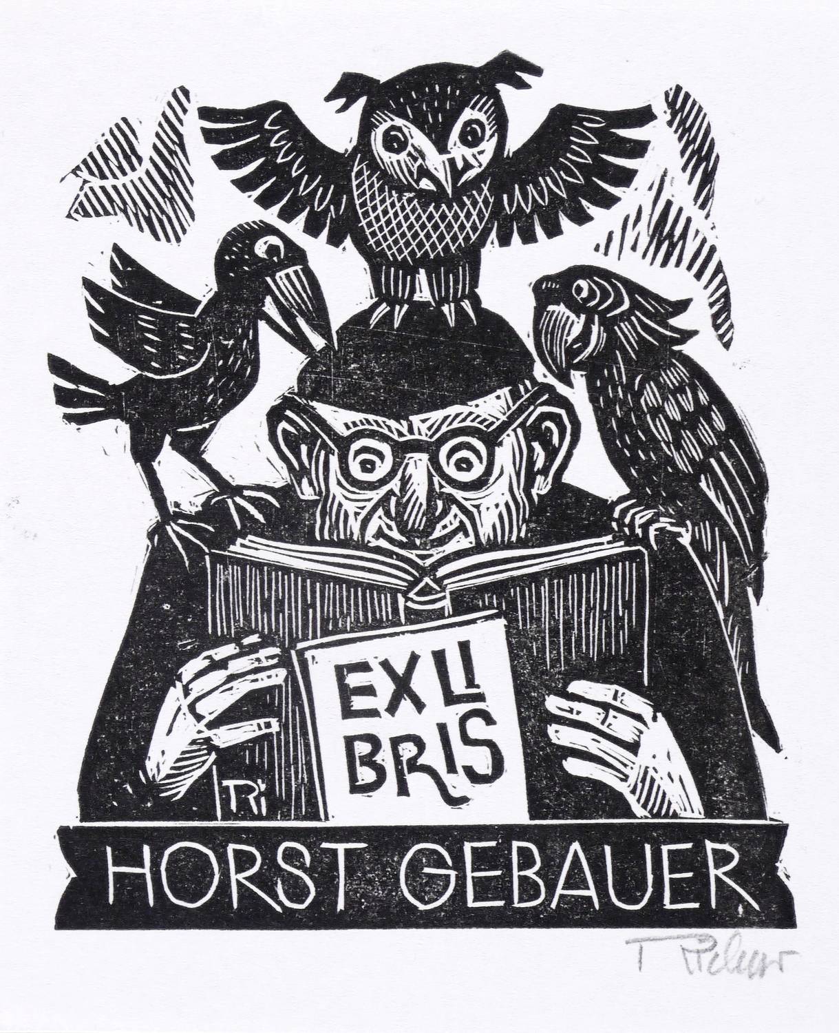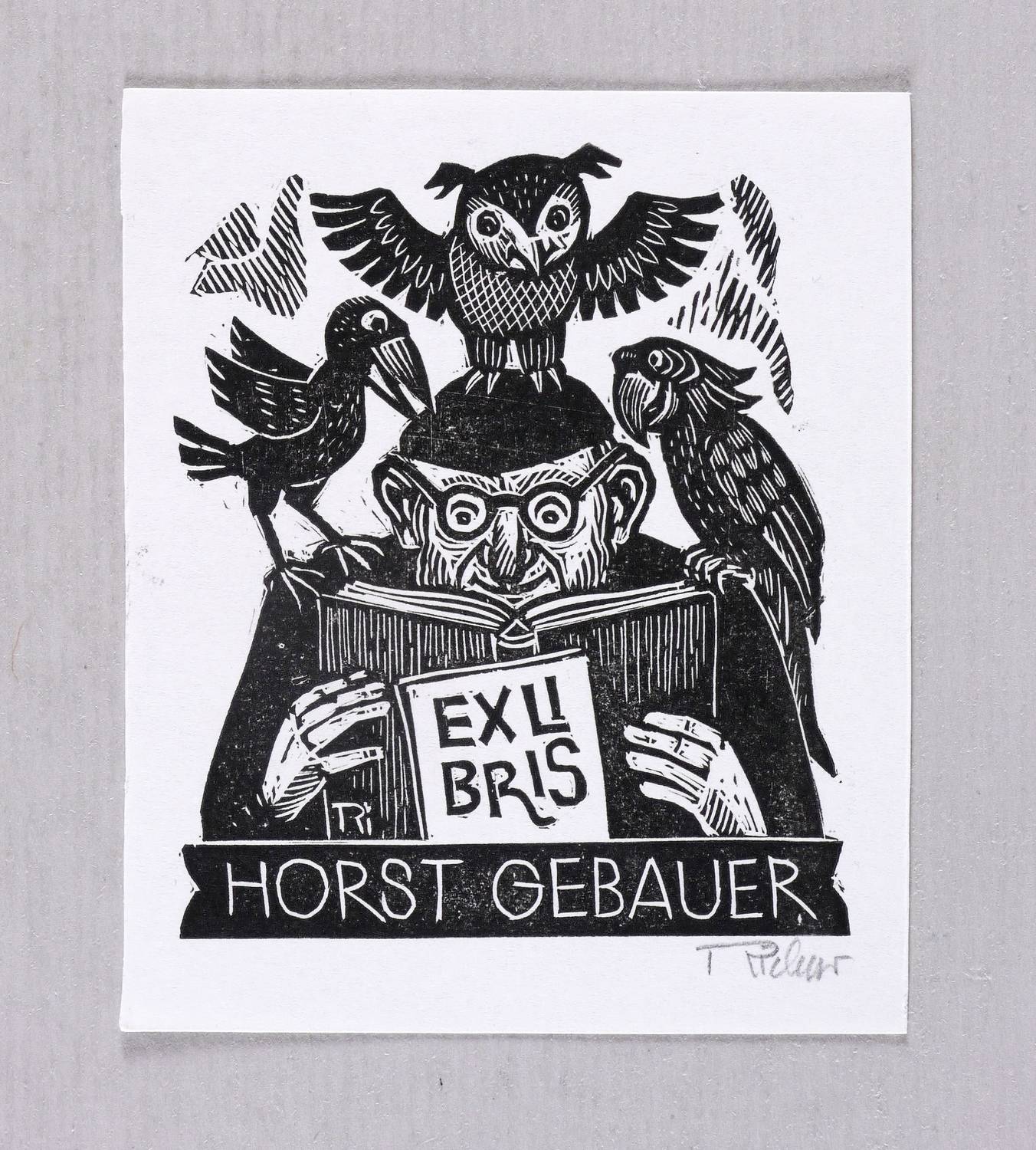 Rechts unten in Bleistift signiert: ″Richter″. Im Druckstock geschnittene Inschrift und Signatur: ″EXLIBRIS HORST GEBAUER // Ri″. – Ohne Mängel. Sehr guter Zustand.