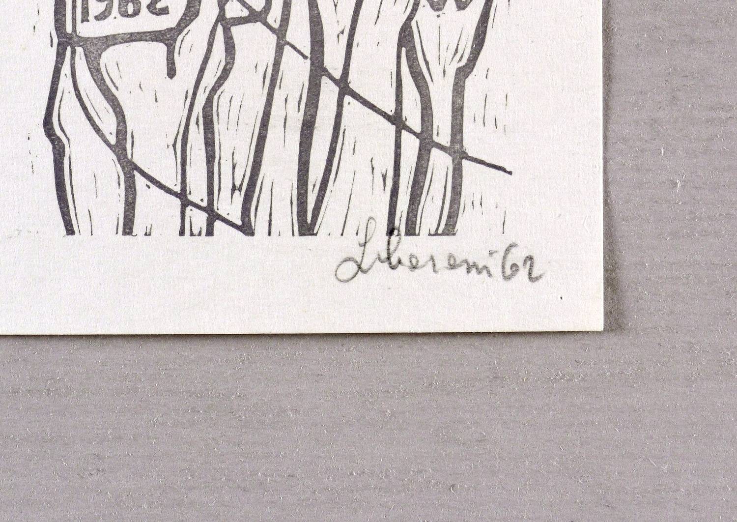 Griffelkunst 202 A4. – Rechts unten in Bleistift signiert und datiert: ″[Libereni?] 62″. Im Druckstock Inschrift. – Tadelloses Exemplar. Sehr gut erhalten.