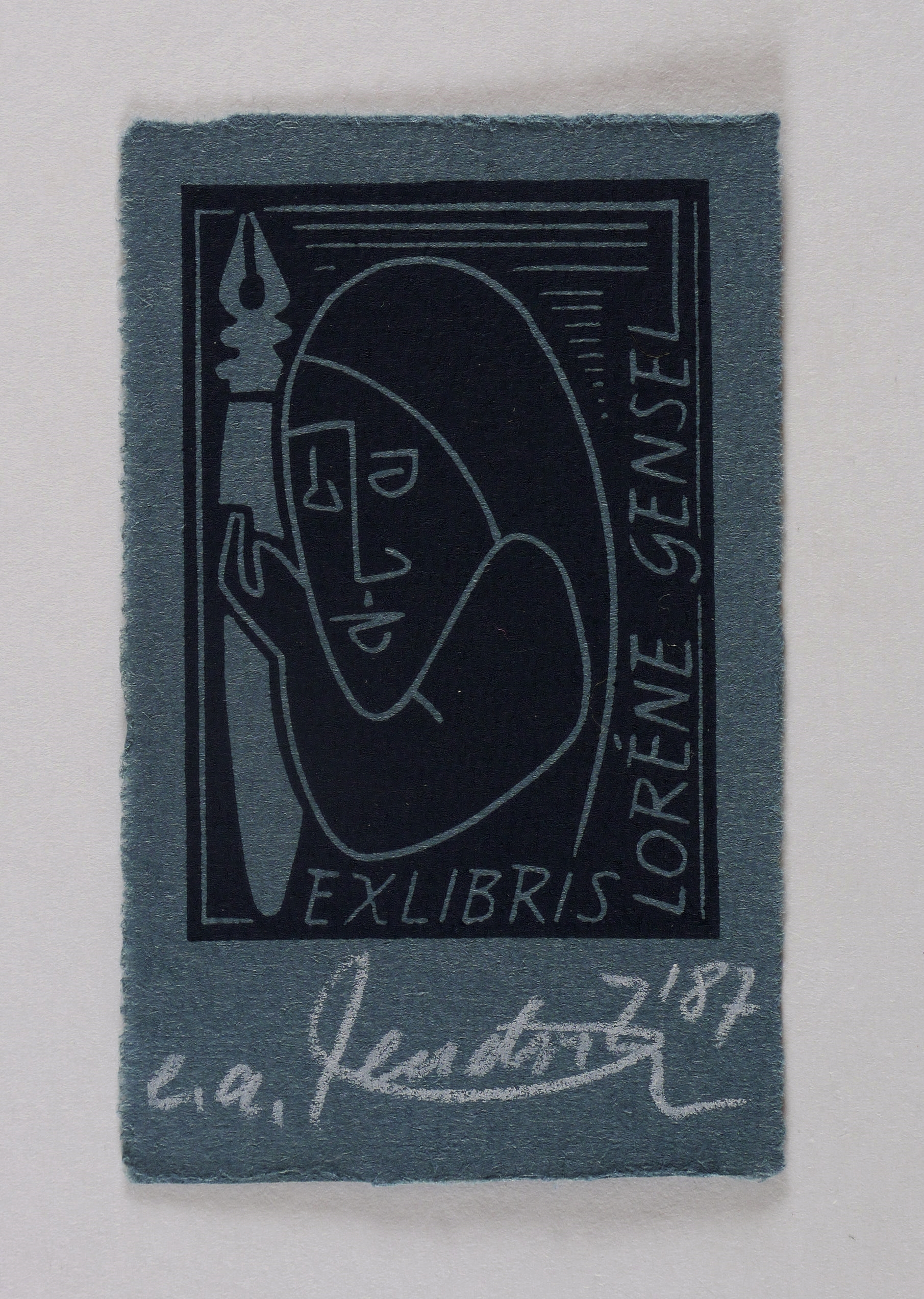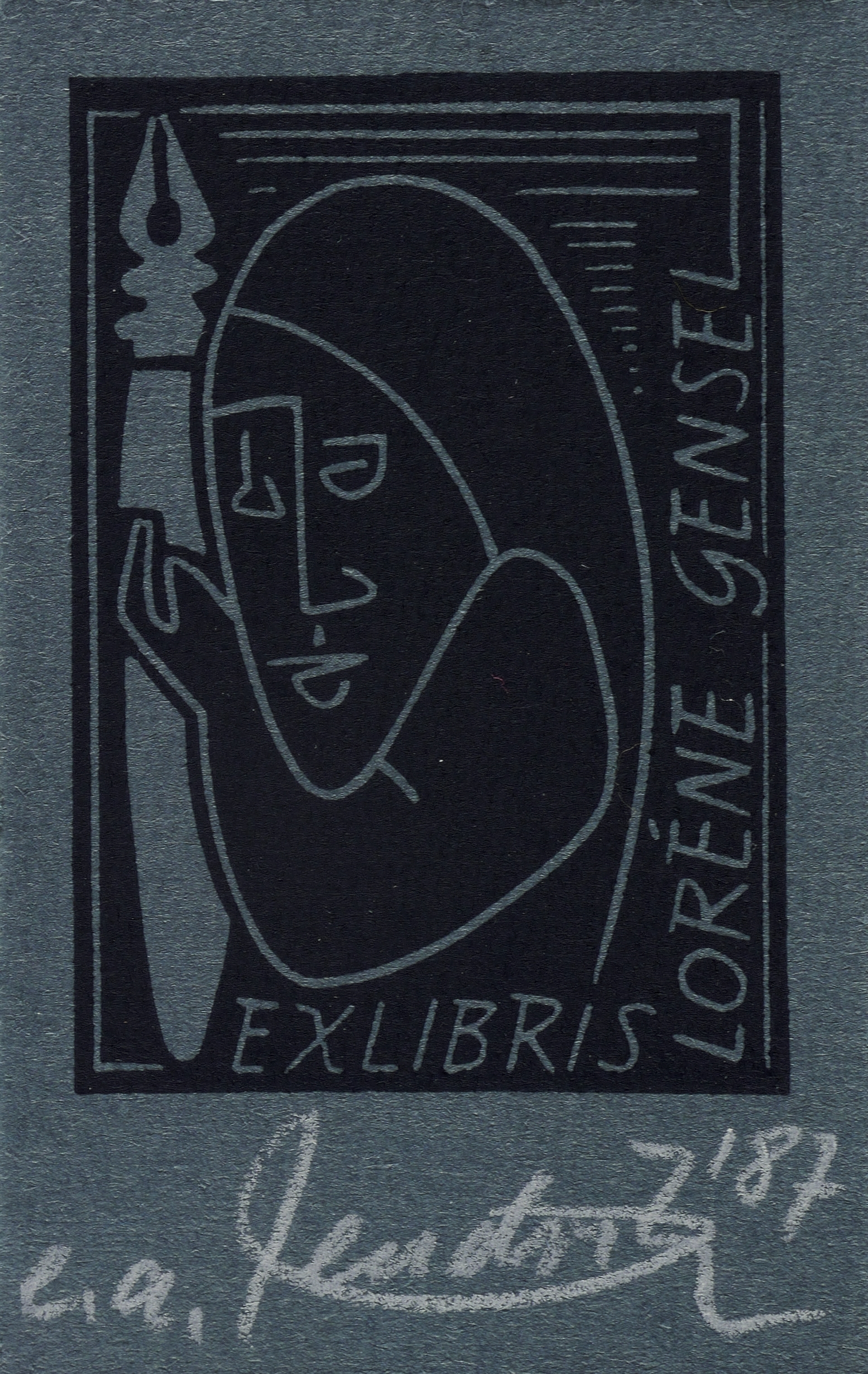 Unterhalb in Farbkreide signiert und datiert: ″hendrik 87″. Links daneben Auflagenbezeichnung: ″e.a.″ Im Druckstock Inschrift: ″EXLIBRIS LORÉNE GENSE″. – Sehr guter Zustand.