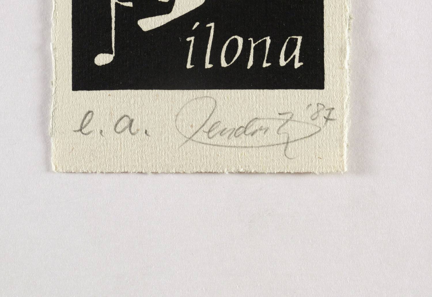 Rechts unten in Bleistift signiert und datiert: ″hendrik 87″. Links unten Auflagenbezeichnung: ″e.a.″ Im Druckstock Inschrift: ″exlibris ilona piegert″. – Sehr guter Zustand.