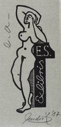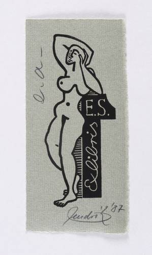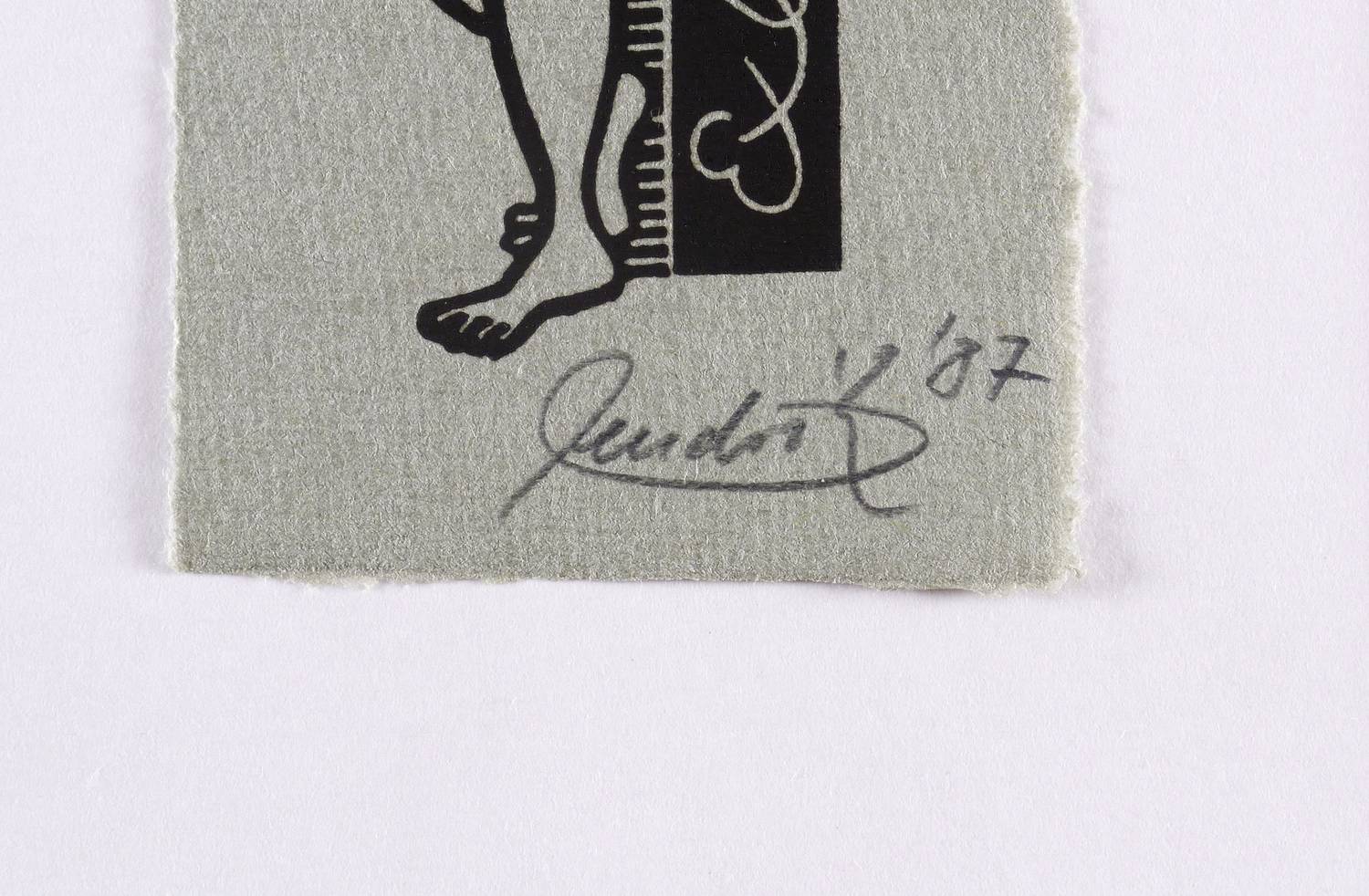 Rechts unten in Bleistift signiert und datiert: ″hendrik 87″. Links oben Auflagenbezeichnung: ″e.a.″ Im Druckstock Inschrift: ″Exlibris E.S.″ – Sehr guter Zustand.