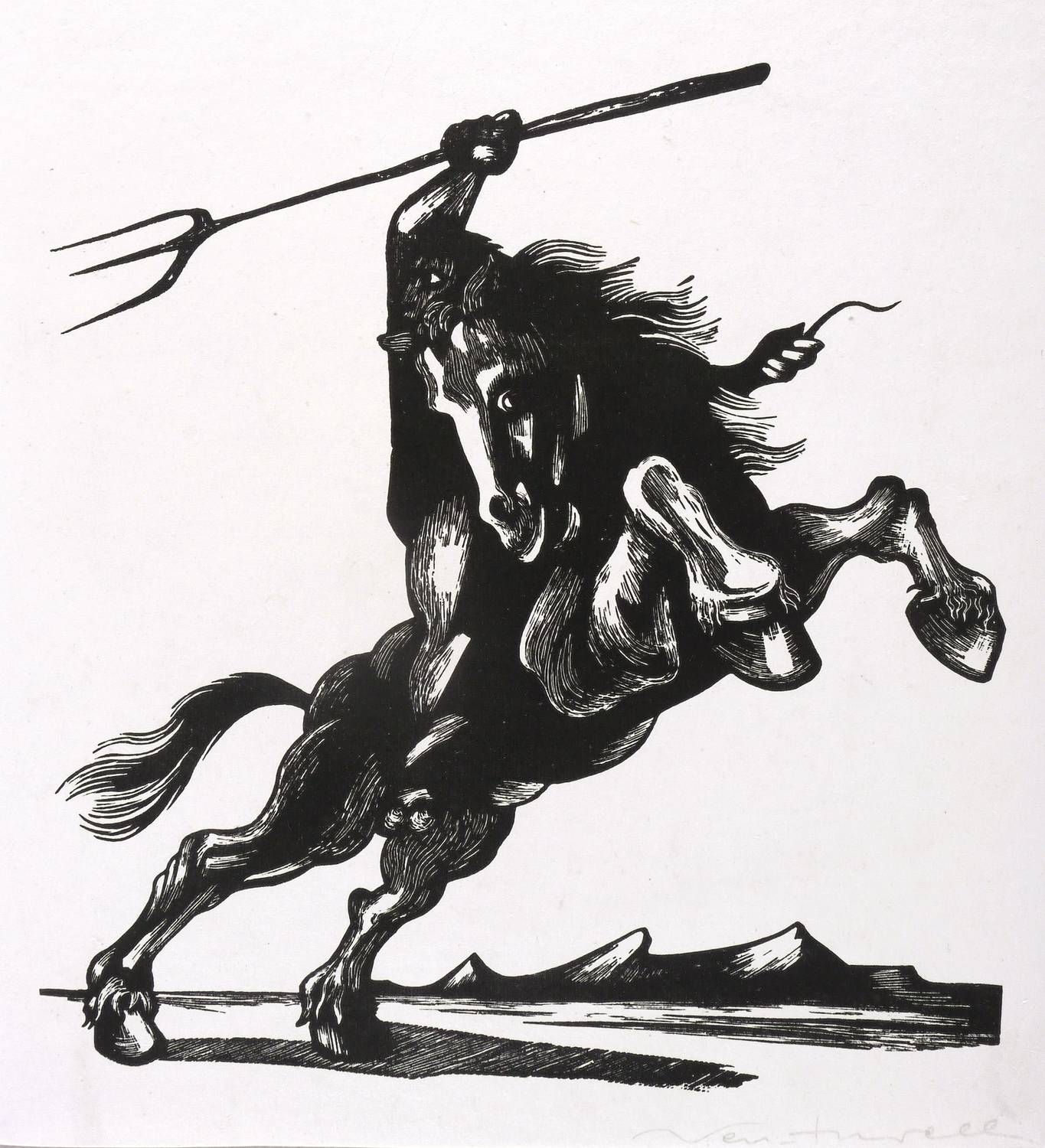 Rechts unten in Bleistift signiert: ″Venturelli″. – Der Holzschnitt steht sowohl stilistisch als auch inhaltlich im Zusammenhang mit den Illustrationen zu ″Patria negra y roja″ (José Venturelli, Genf: Librairie Rousseau 1975). – Provenienz: Sammlung Erhard Frommhold, Dresden. – Sehr guter Zustand.