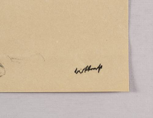 Nicht handsigniert. Im Stein rechts und links unten signiert, datiert und bezeichnet: ″EST 25 / (...) Montag 25.4. // bert brecht″. – Selten. – Ein Exemplar in der Sammlung des Deutschen Historischen Museums Berlin (Inv.- Nr. Gr 64/372). – Bertolt Brecht selbst soll diese Lithografie von Emil Stumpp als das beste Porträt, das je von ihm gezeichnet worden sei, hervorgehoben haben. – Provenienz: Sammlung Erhard Frommhold, Dresden. – Blatt wohl umlaufend beschnitten. Oberflächlich und dem Augenschein nach kaum merklich Wurmfraß. Im unteren Bereich leichte Knickspuren. Insgesamt mäßig guter Zustand.